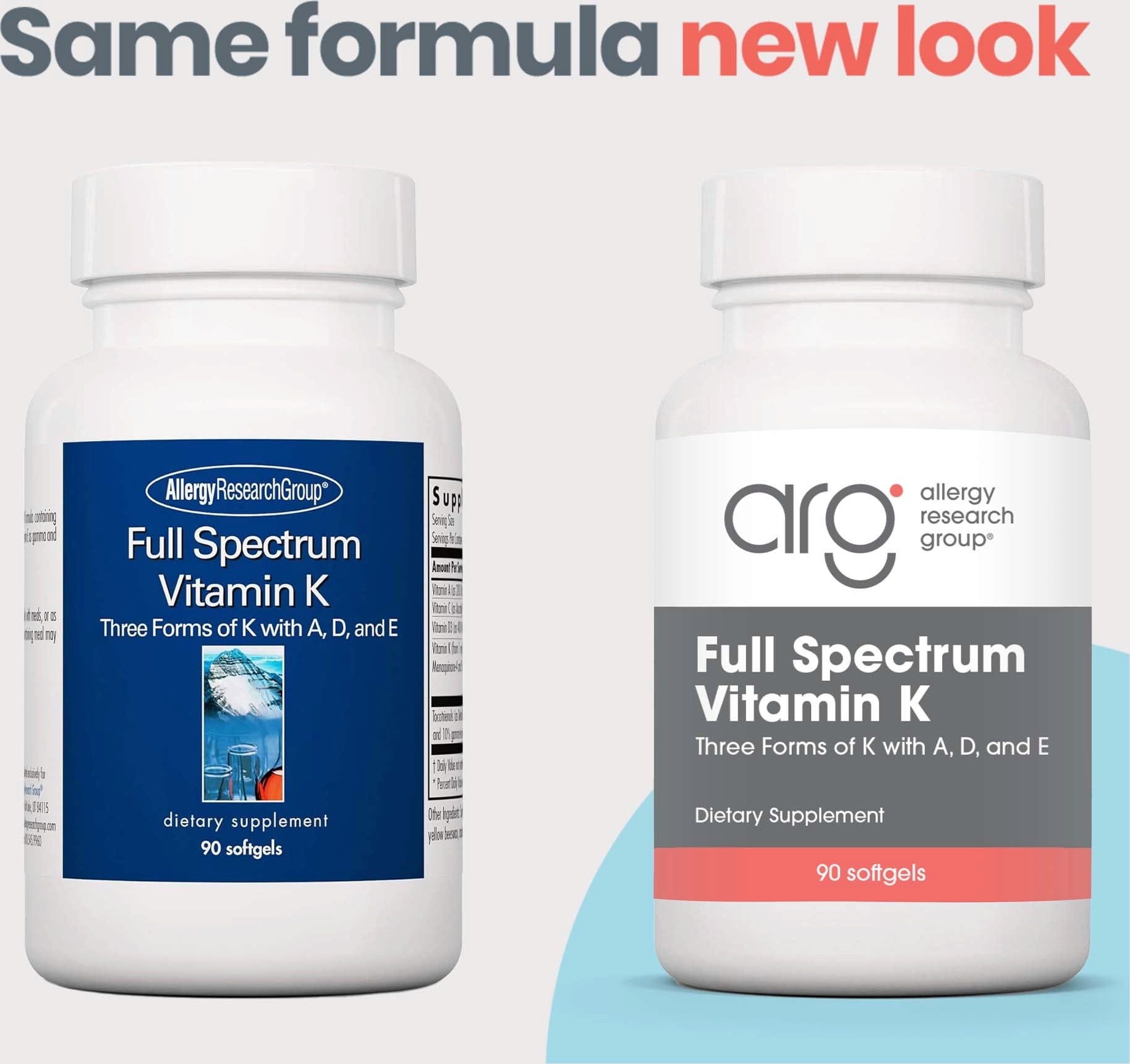 Full Spectrum Vitamin K ™ je celovit vitamina K formula, ki vsebuje tri oblike vitamina K, pa tudi predstavnike drugih oblik maščobi topne vitamine, vitaminov A in D ter vitamin C, kot gama in delta-tokotrienoli.
