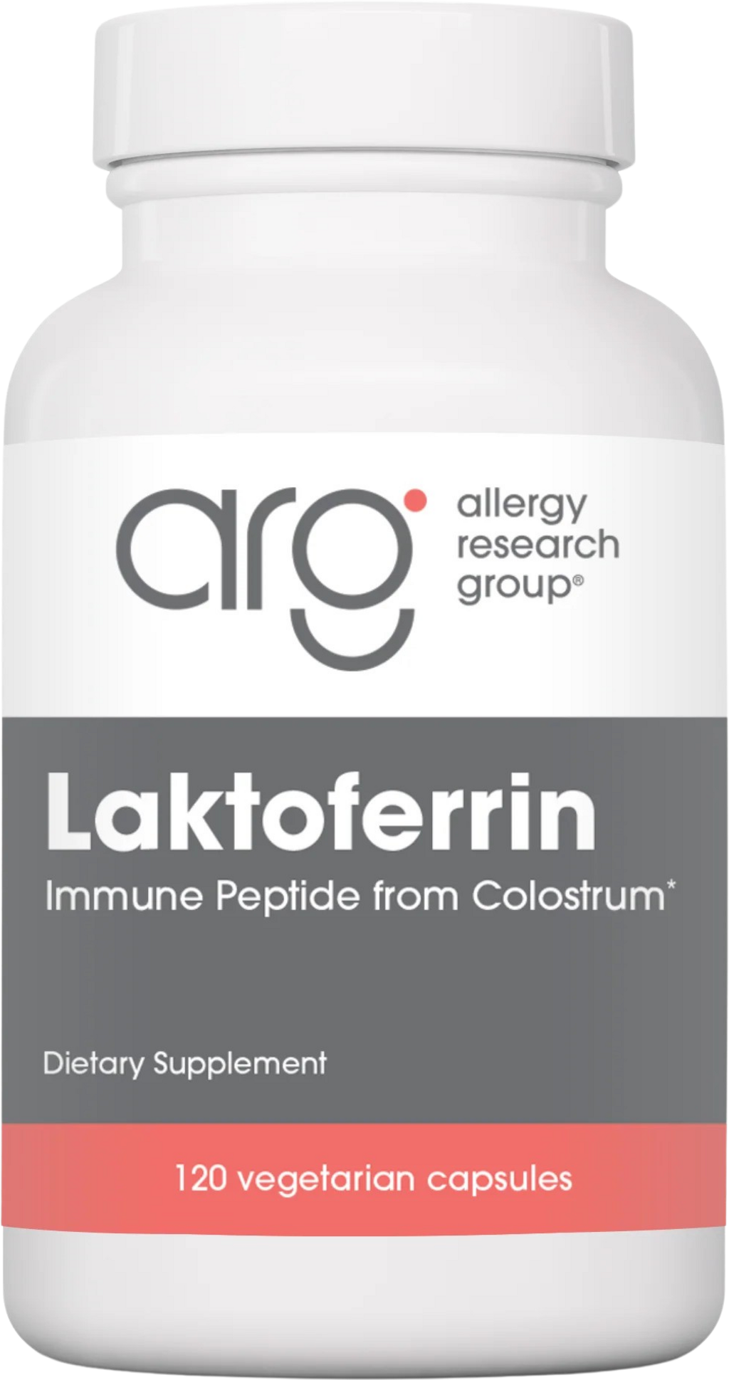 Laktoferin znamke Allergy Research Group je pridobljen iz skrbno prečiščenega kravjega mleka. Vsaka kapsula vsebuje 350 mg čistega laktoferina brez dodatka magnezijevega stearata, titanovega dioksida ali umetnih barvil ter konzervansov. Izdelek ne vsebuje nepotrebnih dodatkov in je primeren za usmerjeno dodajanje hranil.