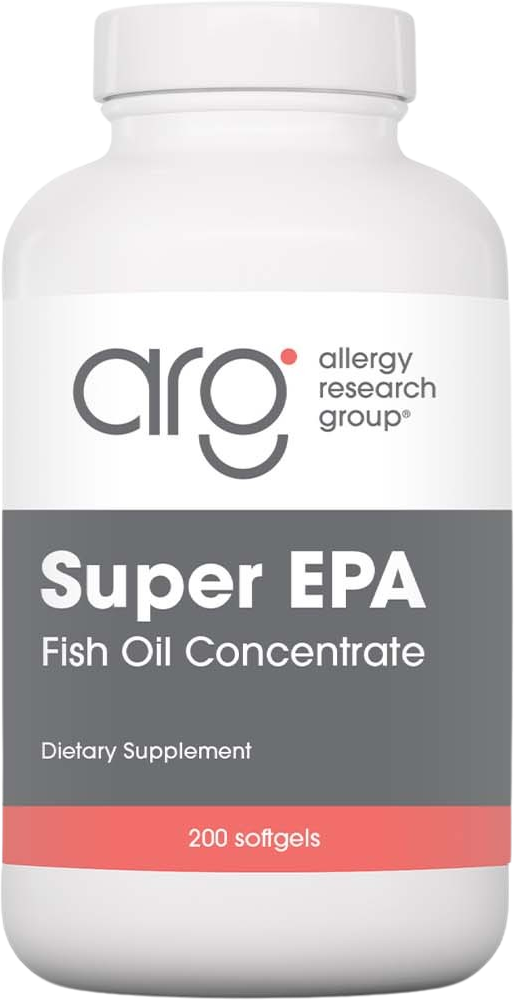 Super EPA znamke Allergy Research Group je visokokakovosten vir esencialnih maščobnih kislin omega-3 eikozapentaenojske kisline (EPA) in dokozaheksaenojske kisline (DHA). Ribje olje je pridobljeno iz sardel, ulovljenih v trajnostno upravljanih obalnih vodah v Peruju. Vsak odmerek dveh soft-gel kapsul vsebuje 720 mg EPA in 480 mg DHA v posebno čisti obliki, ki je bila z molekularno destilacijo očiščena težkih kovin in drugih onesnaževalcev okolja. Kapsula je sestavljena iz želatine, glicerina in prečiščene vode.