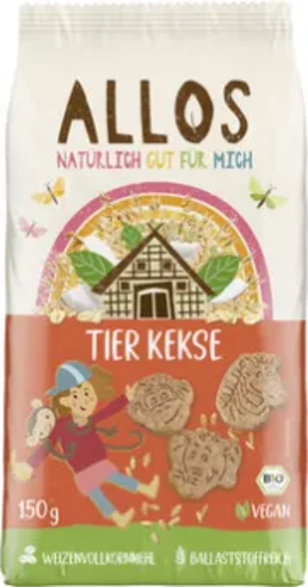 Prava poslastica za najmlajše sladkosnede. ALLOS živalski piškoti so narejeni iz skrbno izbranih sestavin, kot so polnozrnati kosmiči in oplemeniteni z naravno sladkobo. 100% bio in vegansko.