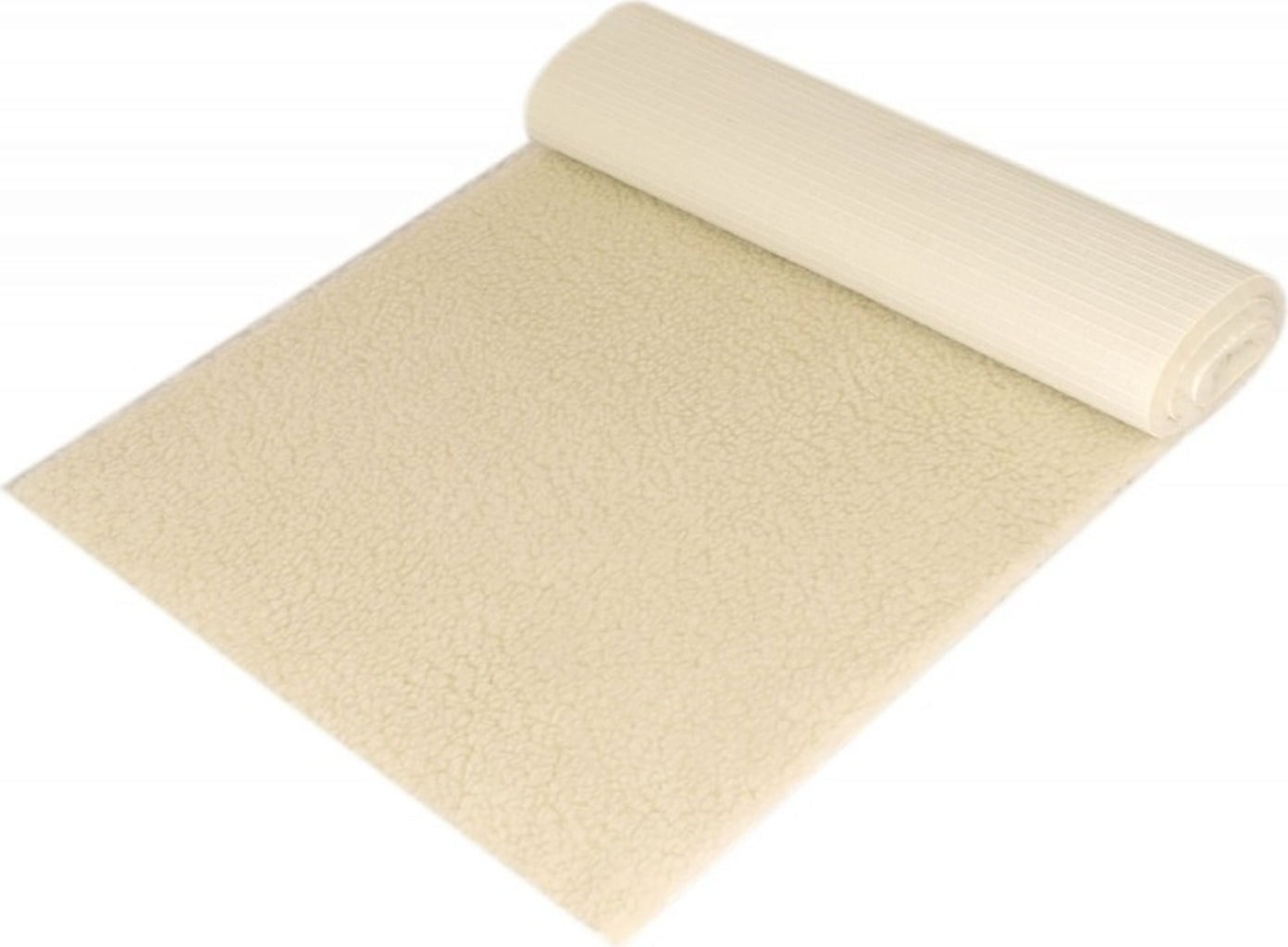 Osnovna naravna joga blazina višine 16 mm, jo lahko razvaljate na preproge, plute ali laminatna tla. Zgoraj je prekrita s 100% mlado volno z občutkom mehkobe, spodnja pa z nedrsečim lateksom naravne barve z utori.