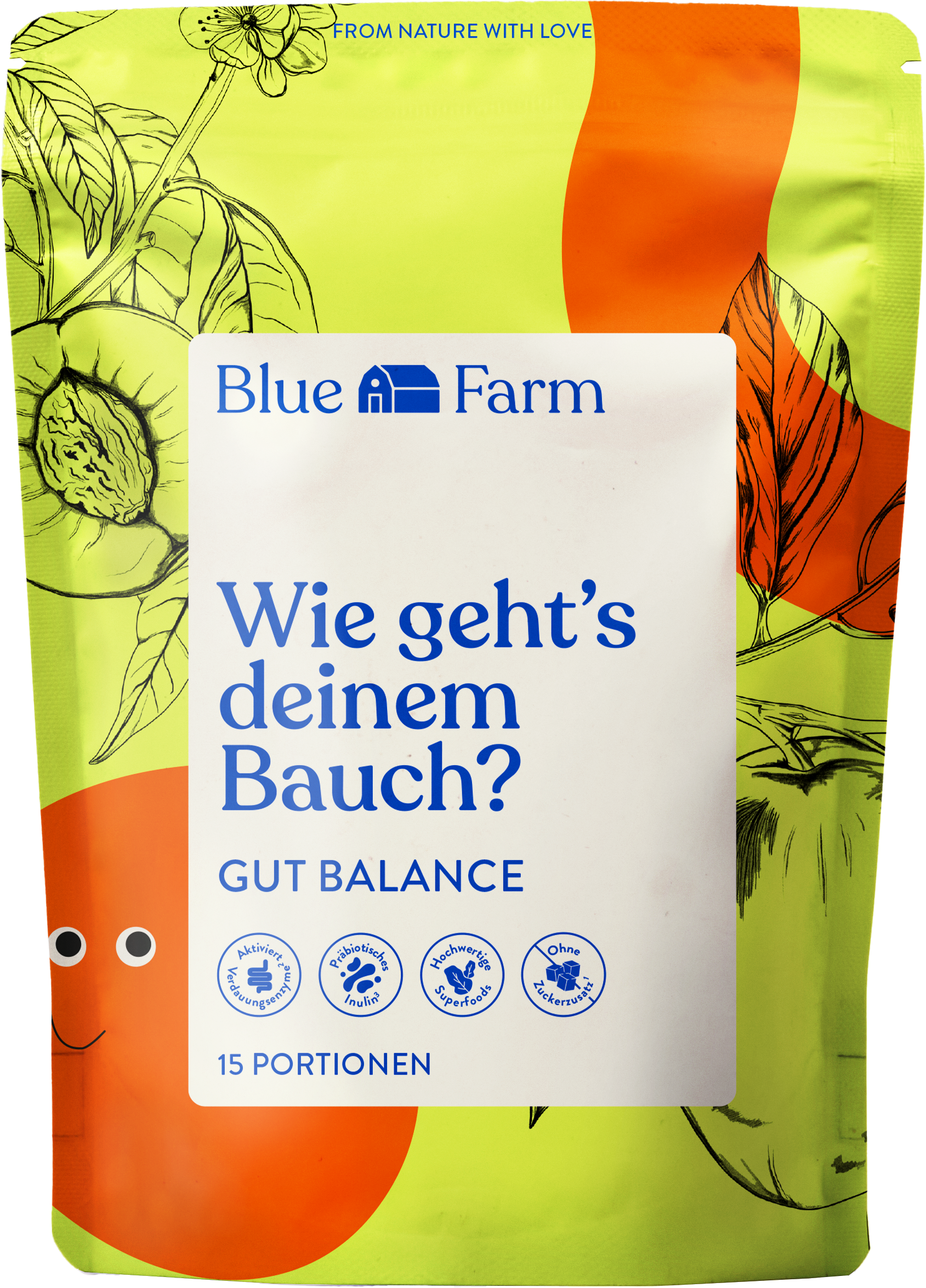 Gut Balance znamke Blue Farm združuje skrbno uravnoteženo mešanico fermentiranega ovsa, inulina iz cikorije, sadnih in rastlinskih praškov ter rastlinskega kalcija iz rdečih alg – vse v priročni obliki prahu. S svojo sadno sestavo manga, ananasa in breskve ta napitek v prahu ponuja prijeten okus. To vam omogoča, da v enem napitku združite številne sestavine, zaradi česar ga lahko enostavno vključite v svoj vsakdanjik.