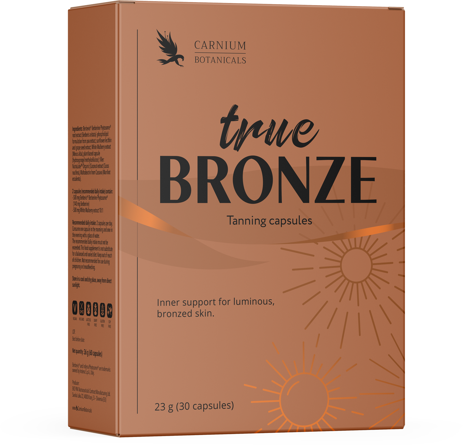 Kapsule za porjavitev TrueBronze so vaš naravni zaveznik za sijočo in lepo polt, ki traja vse letne čase. Skrbno izbrana kombinacija betakarotena, likopena in astaksantina je idealna za vse, ki si želijo nežne zagorelosti in urejene kože brez nepotrebnega izpostavljanja soncu ali umetnih izdelkov.