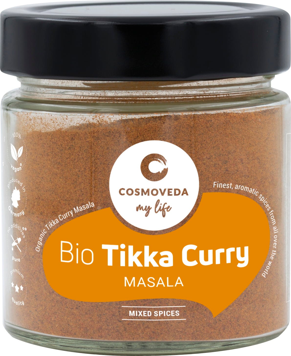 COSMOVEDA BIO tikka kari masala, posebna uravnotežena Ayurveda mešanica, ki vsebuje skrbno izbrane začimbe.