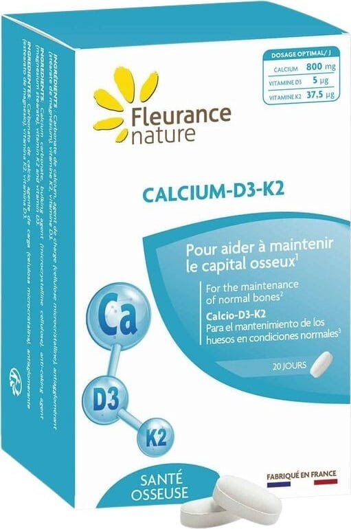 Calciumcarbonat, polnilo (mikrokristalna celuloza), sproščevalno sredstvo (magnezijev stearat), vitamin K2, vitamin D3 (holekalciferol)