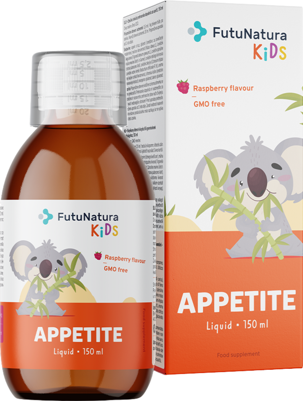 Appetite Liquid znamke FutuNatura Kids temelji na agavinem sirupu. Pripravek je obogaten z rastlinskimi izvlečki, med drugim z izvlečkom grškega sena in spirulino. Poleg tega vsebuje tudi baker in mangan. Appetite Liquid ne vsebuje gensko spremenjenih organizmov. Tekočino je mogoče enostavno odmerjati (glede na težo otroka).