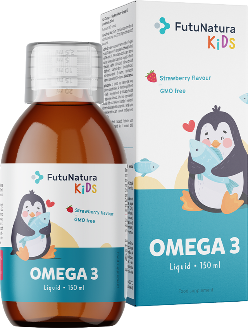 Ta izdelek znamke FutuNatura Kids vsebuje omega-3 maščobne kisline. Poleg tega je sirup obogaten s tremi vitamini: vitaminom A, vitaminom D3 in vitaminom E. Omega 3 Liquids ne vsebuje gensko spremenjenih organizmov in omogoča enostavno odmerjanje (glede na težo otroka).