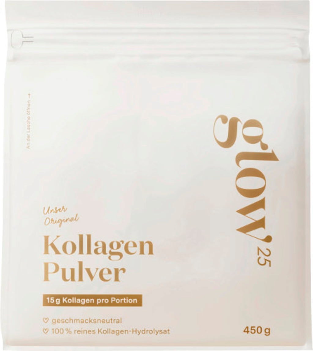 Glow25 Collagen Powder je bioaktivni kolagenski hidrolizat v obliki prahu, ki ga zlahka vmešate v tople in hladne napitke ter hrano. Prašek ima nevtralen okus, zaradi posebnega postopka aglomeracije pa se hitro in brez grudic raztopi. Izdelek ne vsebuje umetnih dodatkov, konzervansov ali polnil.