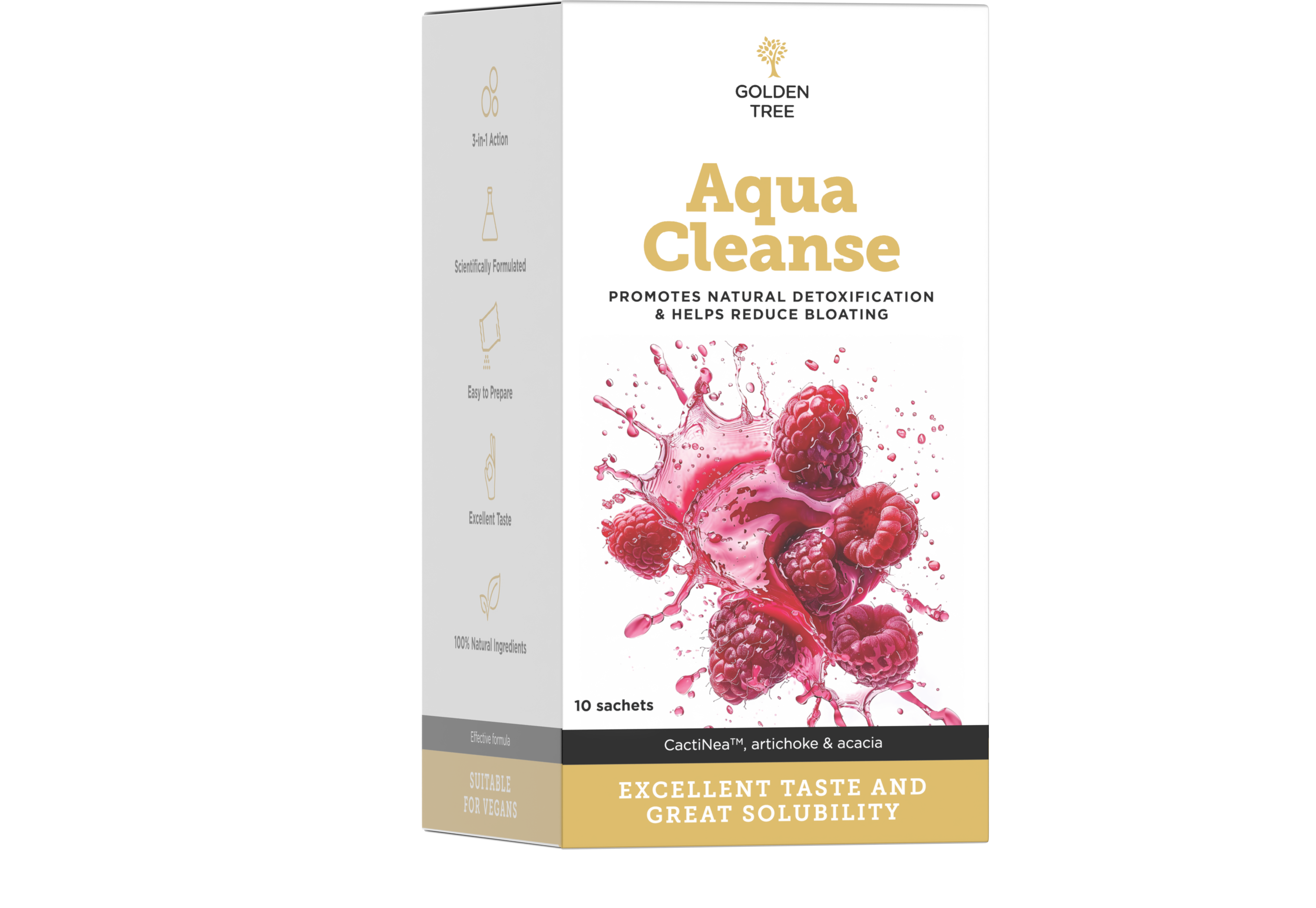 Aqua Cleanse znamke Golden Tree je naravno prehransko dopolnilo, ki združuje izbrane rastlinske izvlečke: