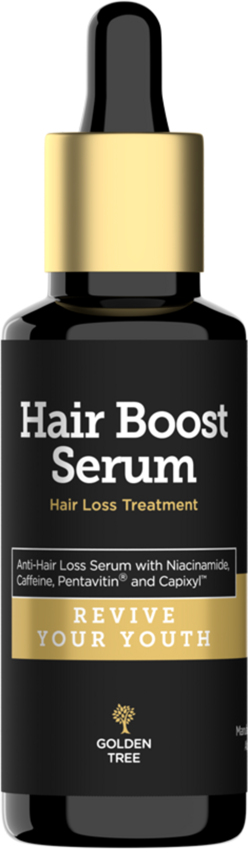 Imate težave z razcepljenimi konicami, prhljajem ter tankimi in krhkimi lasmi? Hair Boost Serum znamke Golden Tree intenzivno vlaži lasišče. Občutljivi lasni mešički hkrati dobijo dovolj kisika in pomembnih hranilnih snovi. Inovativni serum tako ustvarja popolne pogoje za močne in goste lase.