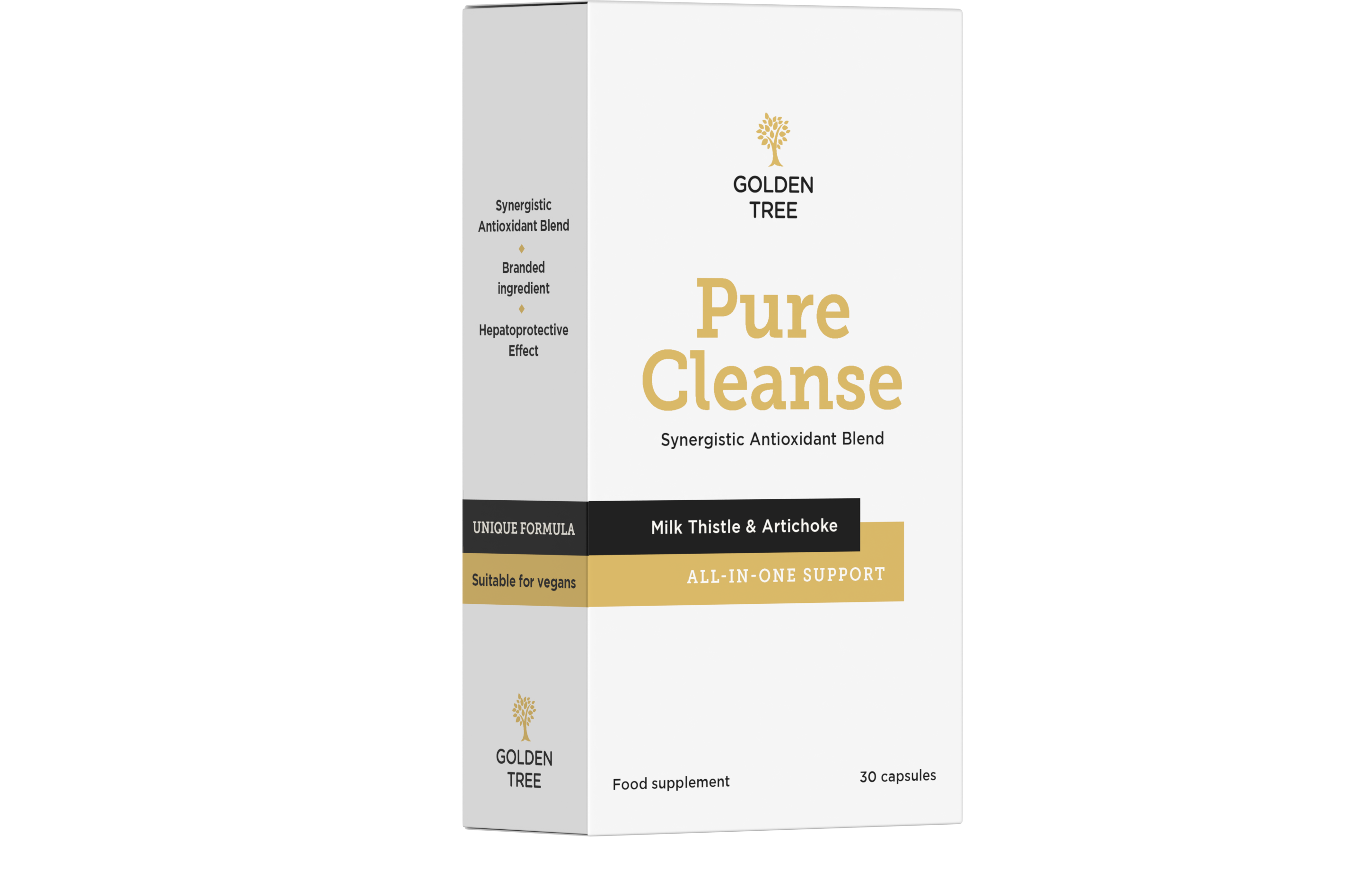 Pure Cleanse znamke Golden Tree združuje izbrane rastlinske sestavine ter jih dopolnjuje z vitaminom B3 in vitaminom C. Kapsule brez laktoze lahko brez težav uživate dlje časa in jih kombinirate z drugimi prehranskimi dopolnili.
