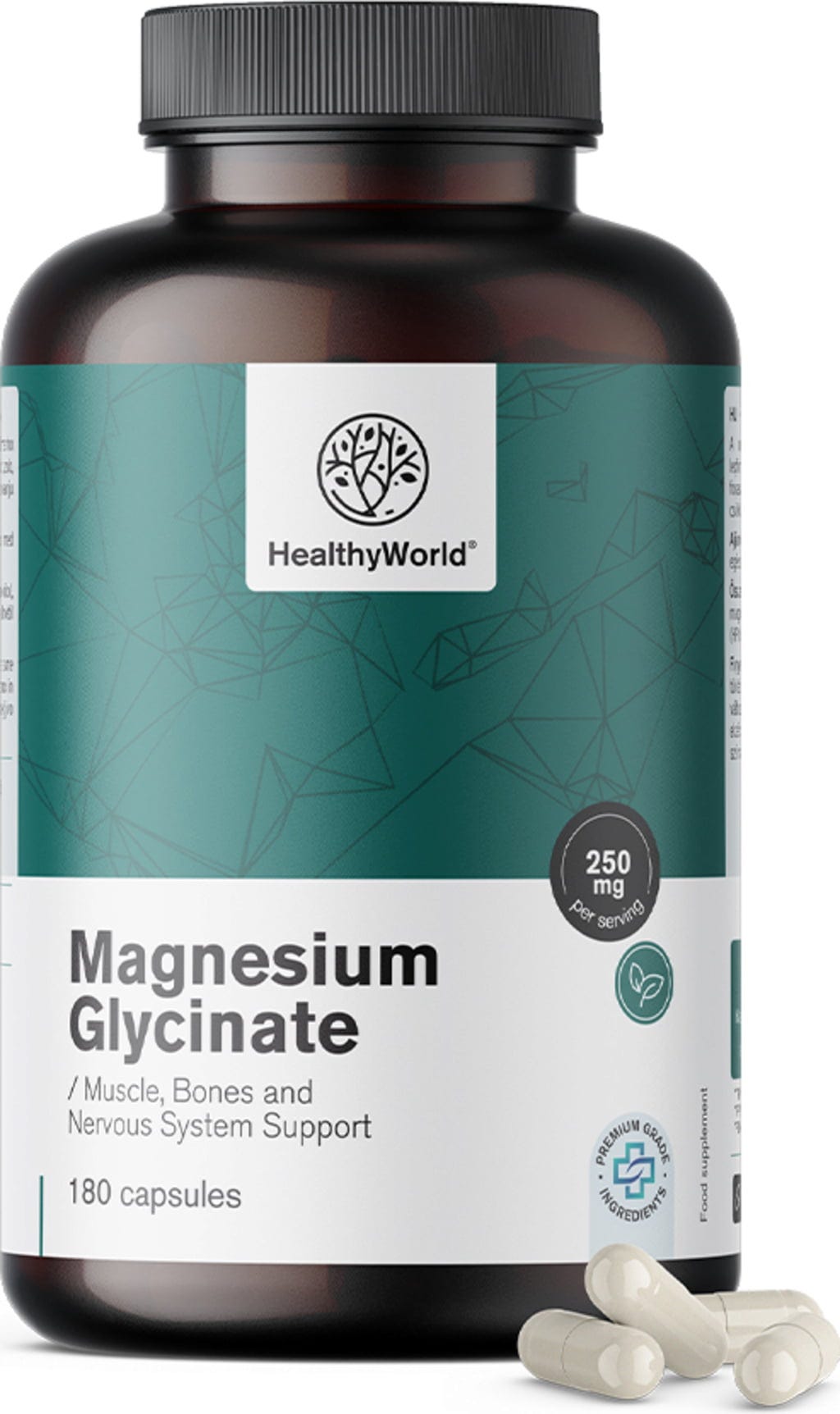 HealthyWorld Magnezijev glicinat 250 mg, 180 kaps.