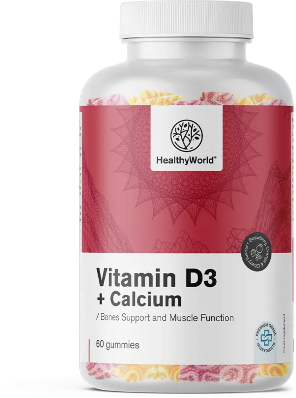 Ti gumijasti bonboni združujejo vitamin D3 in kalcij. Vitamin D prispeva k ohranjanju zdravih kosti. Gumijasti bonboni so odlična alternativa kapsulam in tabletam, saj jih je enostavno jemati. Na voljo so v okusnih okusih jagode, pomaranče in češnje ter ne vsebujejo glutena.