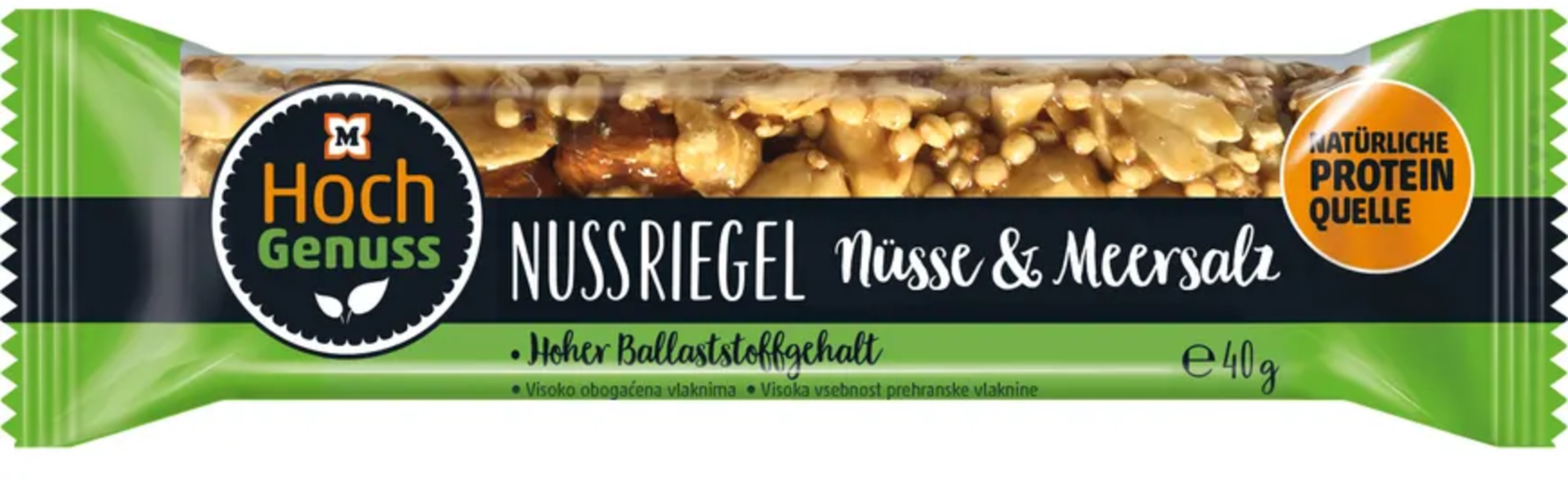 Hochgenuss Ploščica z oreščki, oreščki in morska sol (40 g) € 1,09 (€ 27,25 / kg)