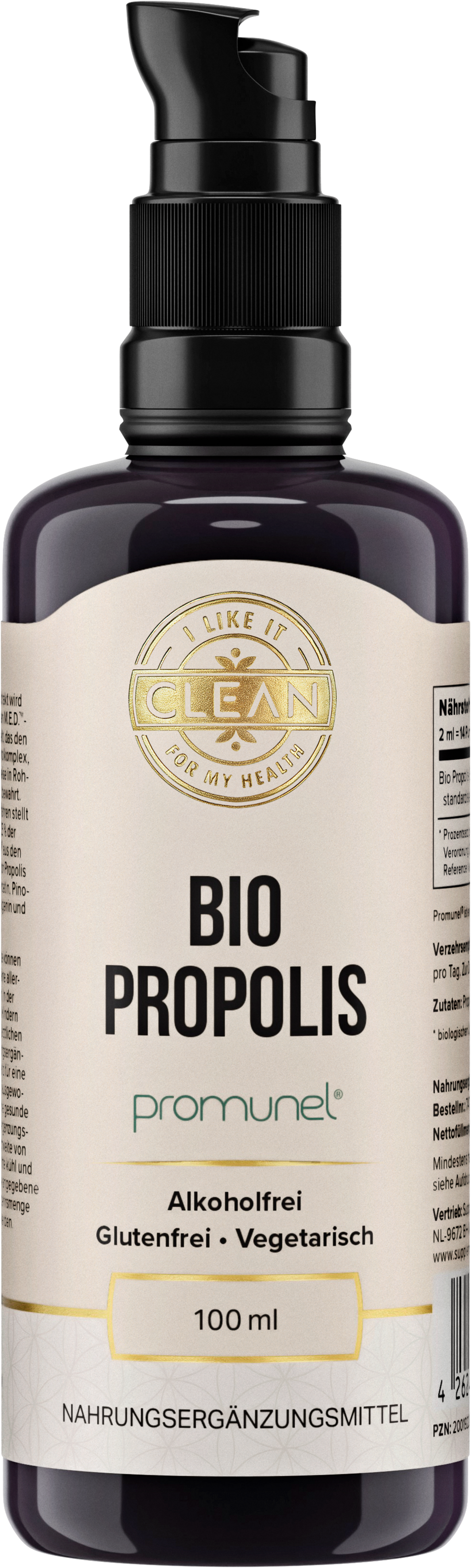 Odkrijte izvleček bio propolisa znamke i like it clean - formulacijo brez alkohola z zmanjšanim odmerkom, ki vsebuje le dve sestavini: standardiziran izvleček propolisa (Promunel™) in bio glicerin iz lanenega semena. Ta izdelek, pakiran v visokokakovostno ultravijolično steklo MIRON in s pipeto iz plastike brez BPA in mehčal, ponuja prefinjeno kombinacijo kakovosti in čistosti.