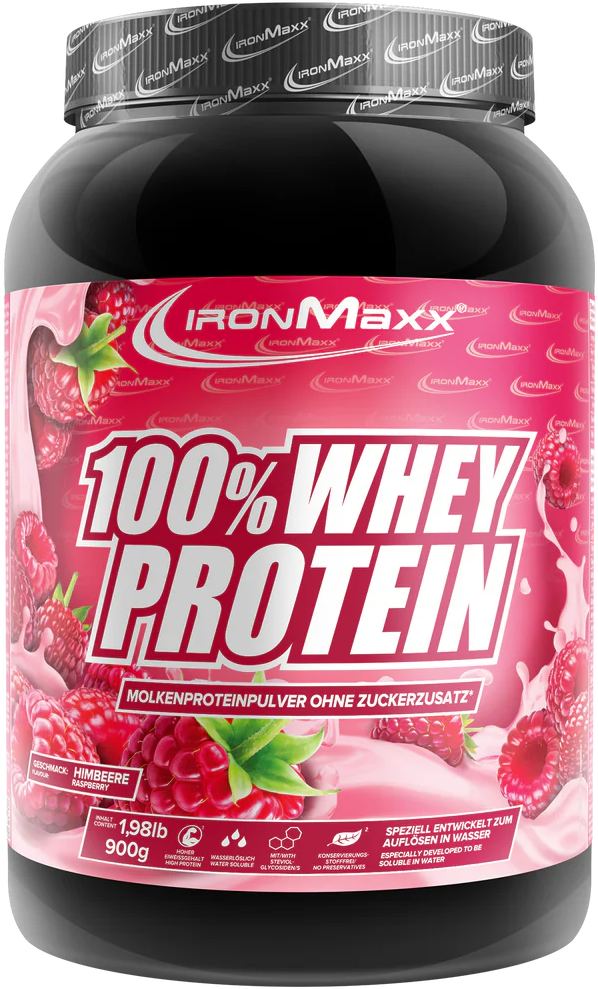 ironMaxx 100% Whey Protein, malina (900 g)