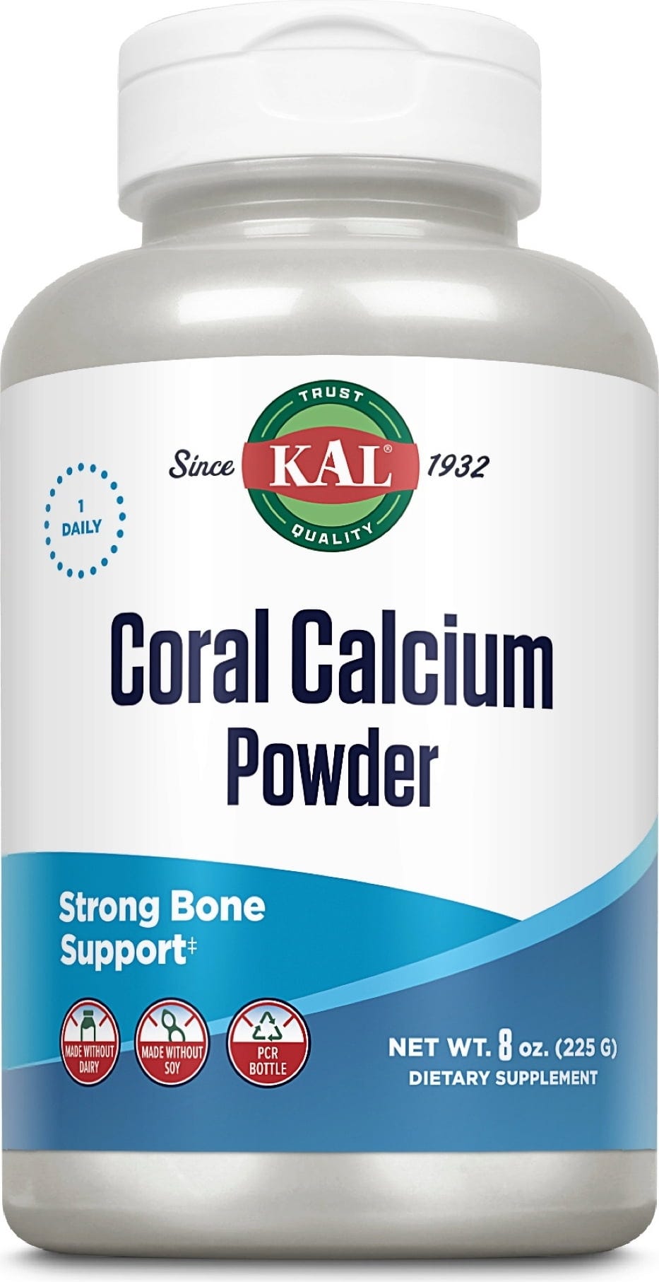 Kalcij v prahu znamke KAL je pridobljen iz čistega kalcija iz japonskih koral. Prašek lahko enostavno vmešate v hrano ali pijačo in vam zagotovi 1.000 mg kalcija na porcijo.