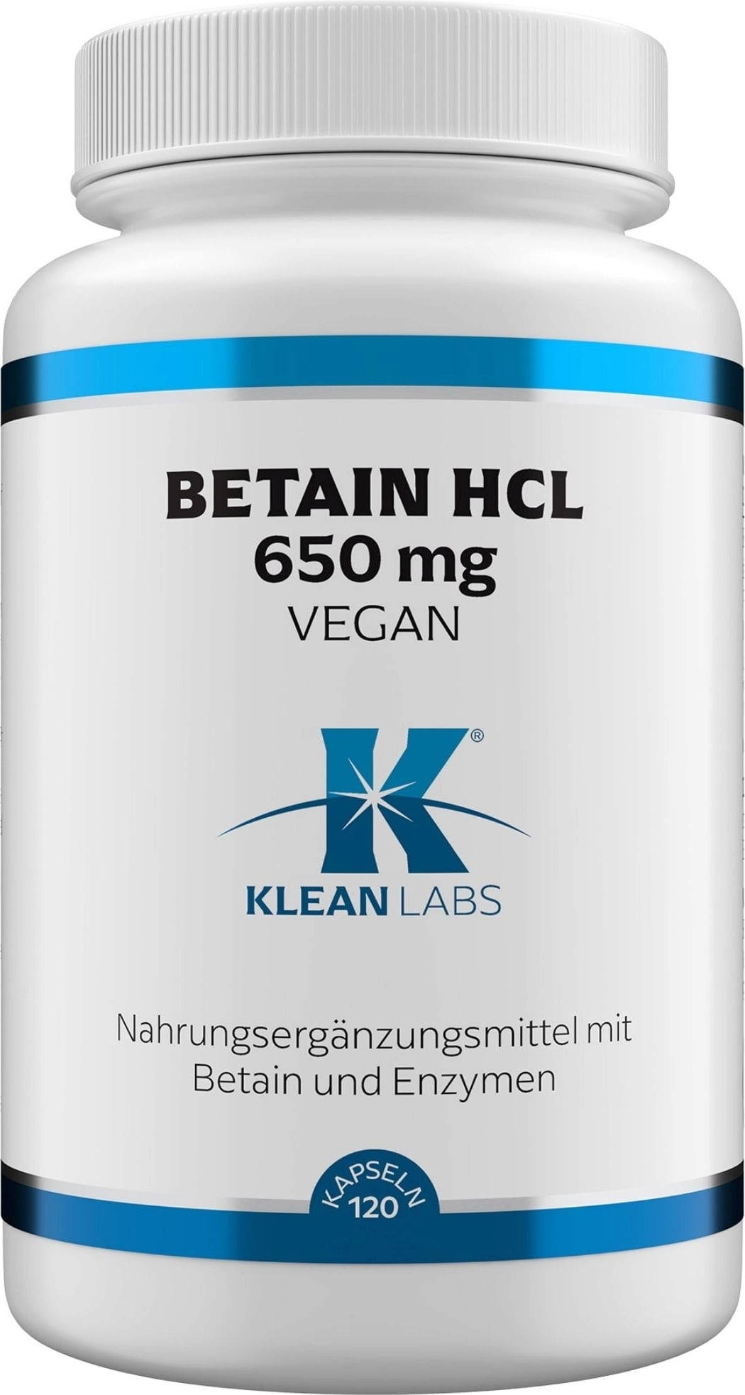 Betain HCl vegan znamke Klean Labs je prehransko dopolnilo na osnovi betain hidroklorida v kombinaciji s kislinsko stabilnimi proteazami in rastlinskimi izvlečki. Formula je popolnoma veganska in ne vsebuje živalskih sestavin, zato je primerna za rastlinsko prehrano.