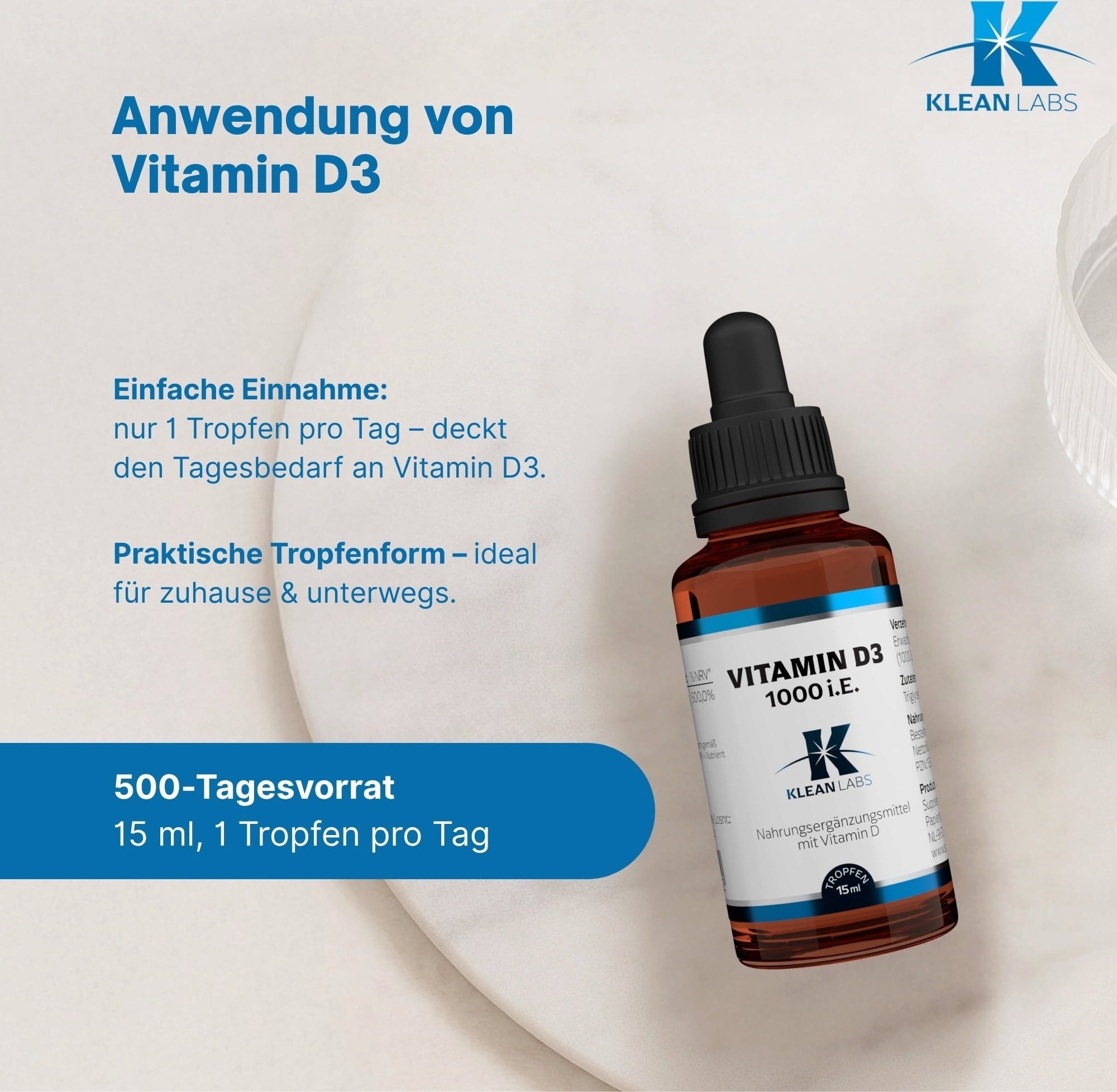 - 1000 IU vitamina D3 na kapljico