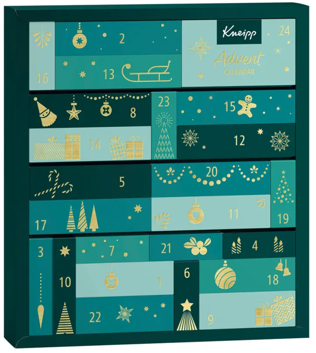 Ta adventni koledar bo s svojim božičnim dizajnom v hipu polepšal vašo dom. 24 izdelkov za telo, roke in ustnice čaka, da jih odkrijete. Popestrite si predbožični čas z dodatki za kopel in izdelki za nego iz adventnega koledarja znamke Kneipp.