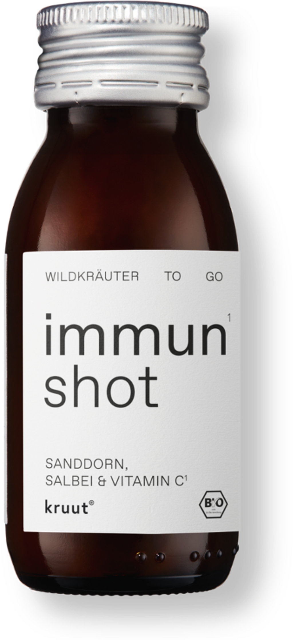 Immun Shot znamke kruut temelji na preizkušenem receptu naravno motnega jabolčnega Demeter kisa in surovega cvetnega medu, kombiniranega s sadnim rakitovcem. Tekoča zeliščna mešanica vsebuje izvlečke šipka, materine dušice, žajblja in trpotca.