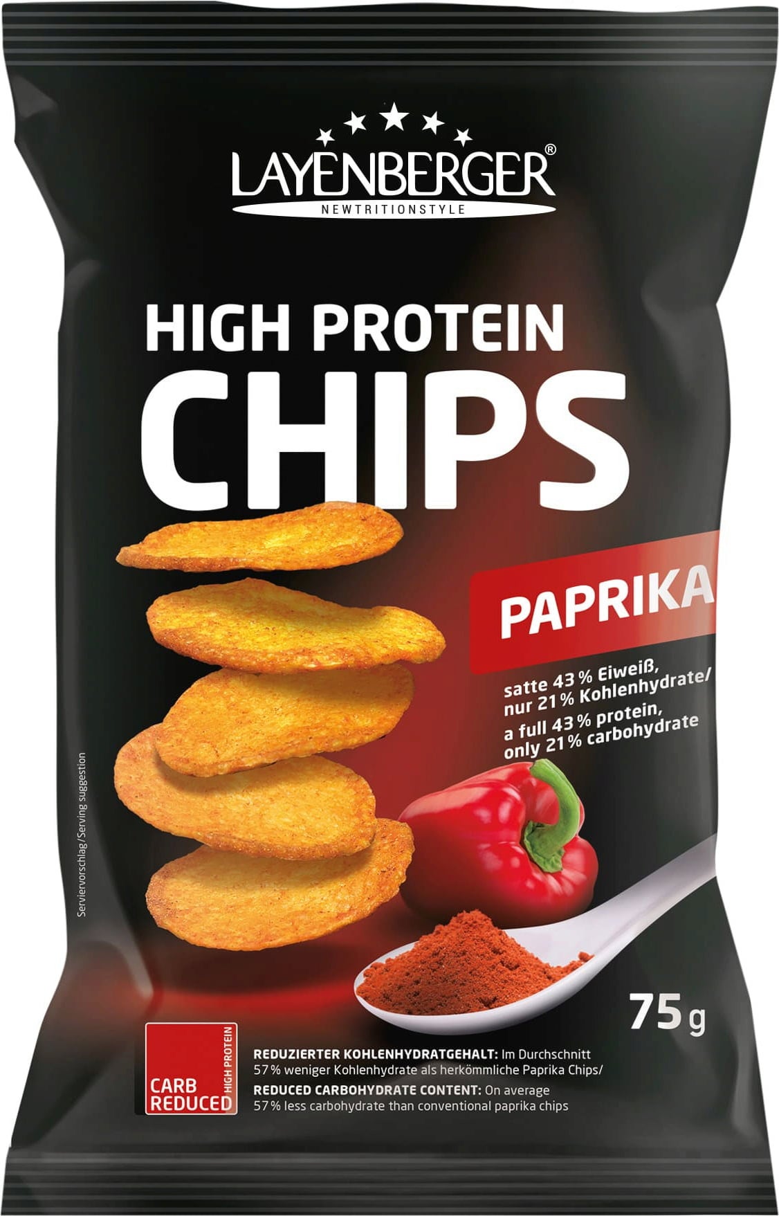 Layenberger High Protein Chips vam ponuja sodobno možnost premišljenega prigrizka. V primerjavi z običajnim krompirjevim čipsom ga odlikuje zmanjšana vsebnost ogljikovih hidratov in zelo visoka vsebnost proteinov. Ker proteini prispevajo k ohranjanju mišične mase, je za čips primeren dodatek k proteinsko usmerjeni prehrani.