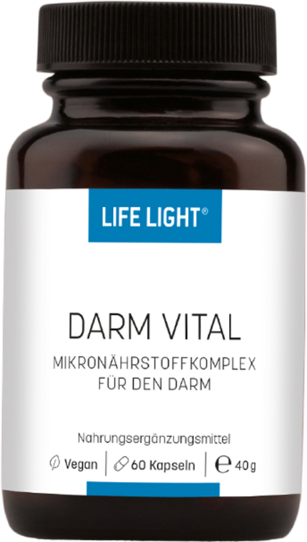 Darm Vital znamke Life Light® vsebuje uravnoteženo kombinacijo aminokislin, vitaminov in mineralov. Formula vključuje L-glutamin in L-arginin ter pomembna mikrohranila, kot so cink, vitamin C, folna kislina in vitamin B6.