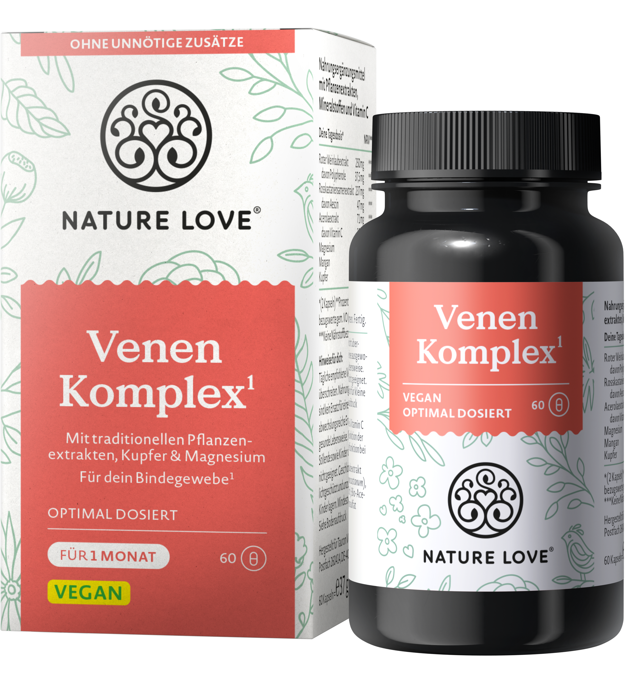 Ta kompleks vas podpira z visokokakovostnimi hranili, če dolgo stojite ali veliko hodite. V tem kompleksu znamke Nature Love so združeni visokokakovostni rastlinski izvlečki iz listov rdeče trte in kostanjev z naravnim vitaminom C iz acerole, magnezijem, manganom in bakrom. V formuli ni nepotrebnih dodatkov. Kapsule so tudi 100% veganske.