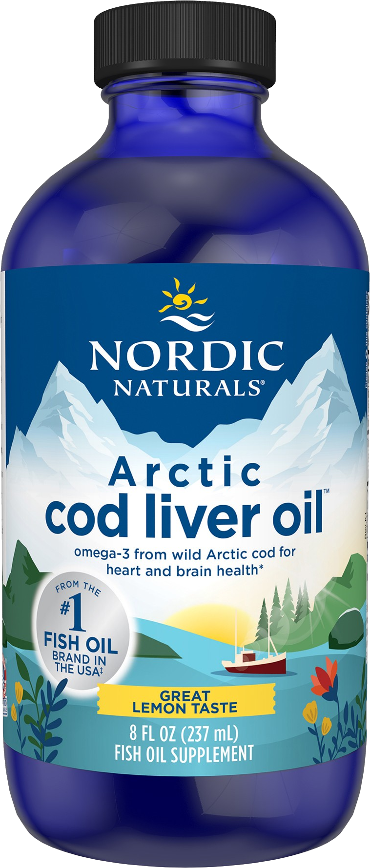 Z Arctic Cod Liver Oil Lemon znamka Nordic Naturals ponuja visokokakovostno olje iz jeter arktične trske. Ta vrsta ribe ima še posebej visoko vsebnost omega-3 maščobnih kislin ter vsebuje EPA in DHA. Osvežilna limona zagotavlja prijeten okus.