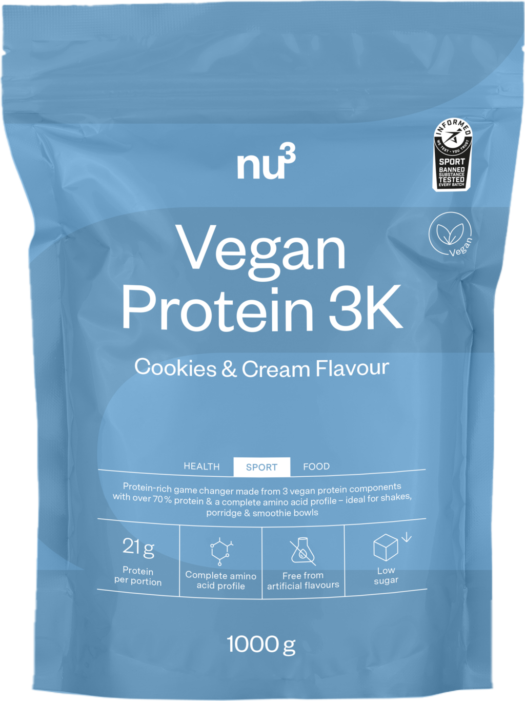 nu3 Vegan Protein 3K, Cookies & Cream (1 kg)