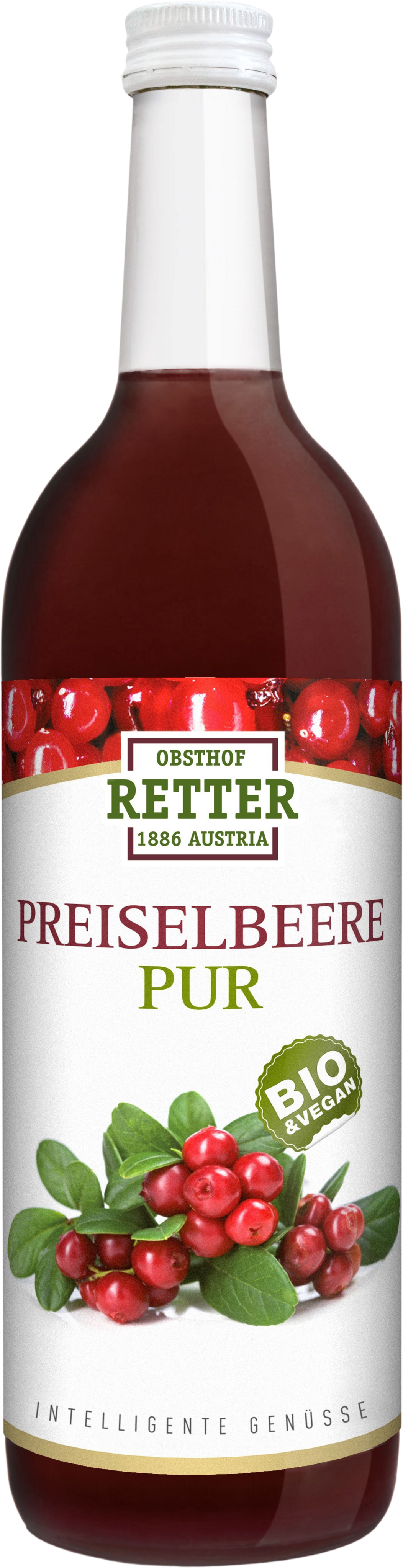 Bio čisti brusnični sok znamke Obsthof Retter v trenutku poskrbi za prijetno sadno noto. 100% bio naravni sok je pridobljen izključno z nežnim stiskanjem sadežev. Uporablja se le popolnoma zrelo sadje, kar zagotavlja intenzivno sadni okus. Brusnice vsebujejo vitamine A, C, E in B ter kalij, magnezij, kalcij, železo in polifenole.