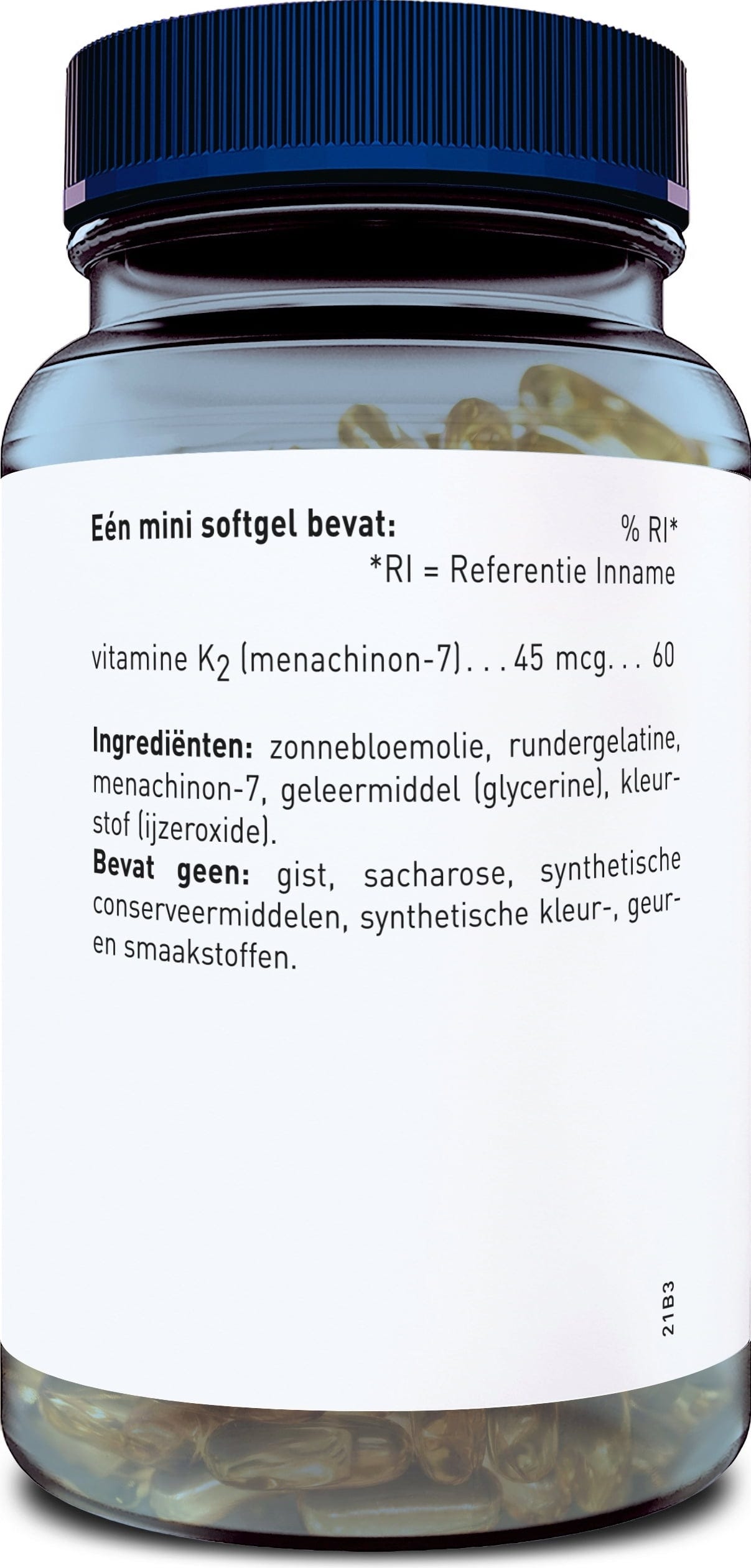 Mehki gel vsebuje 45 mcg vitamina K2 kot menakinon-7, ki je v maščobi topen vitamin. Zaradi majhnosti mehkih gelov jih je enostavno pogoltniti.