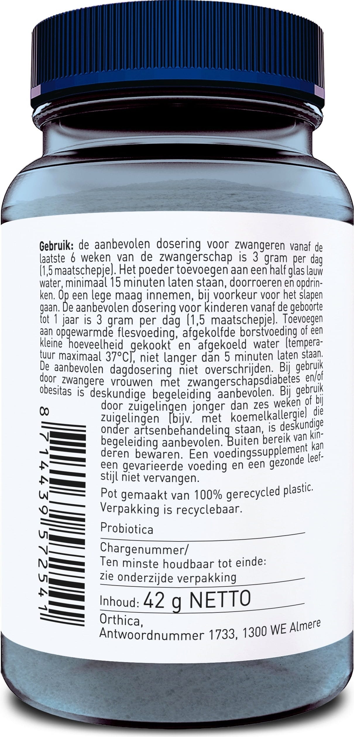 Priporočen odmerek za nosečnice zadnjih 6 tednov je 3 grame (2 merici) dnevno z zadostno količino vode na prazen želodec, priporočljivo pred spanjem. Za optimalni učinek raztopite prah v mlačni vodi, mleku, jogurtu ali sadnem soku. Pustite stati najmanj 15 minut, premešajte in spijte. Primerno za otroke od rojstva do 1 leta starosti. 3 g dnevno (2 merici) premešajte z najmanj 10 ml pogrete hrane v steklenički, materino mleko ali majhno količino prekuhane in ohlajene vode (temperatura največ 37° C). Ne pustite stati več kot 5 minut.
