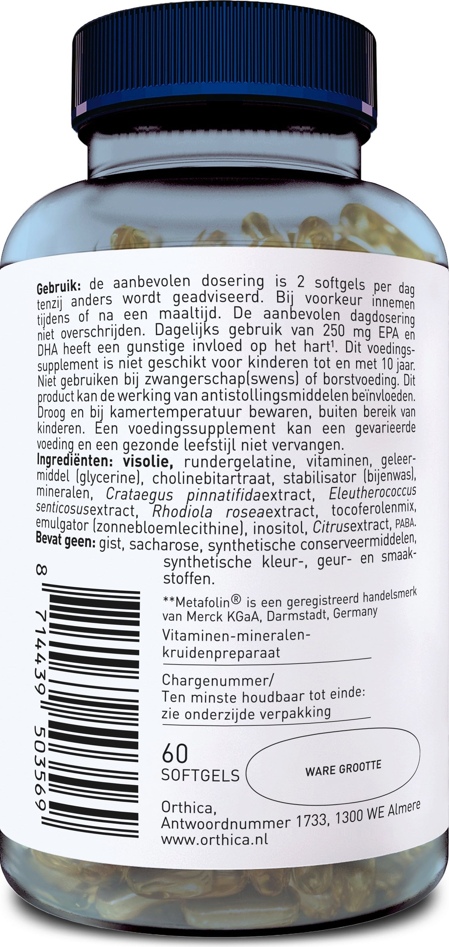 Ribje olje, minerali, želatina, Vitamini, sojin lecitin, sojino olje, Naravna mešanica tokoferolov, Holin Bitartrat, Inozitol, Lutein kompleks, Izvleček Gloga, Sojini izoflavoni, Mehurjasti bračič (Fucus vesiculosus), para-aminobenzojska kislina (PABA), Ginko bilboa, Izvleček limone, Likopen, Izvleček siberskega ginsenga, Železovoksid rumena (E172)[1], Glicerin[2]
