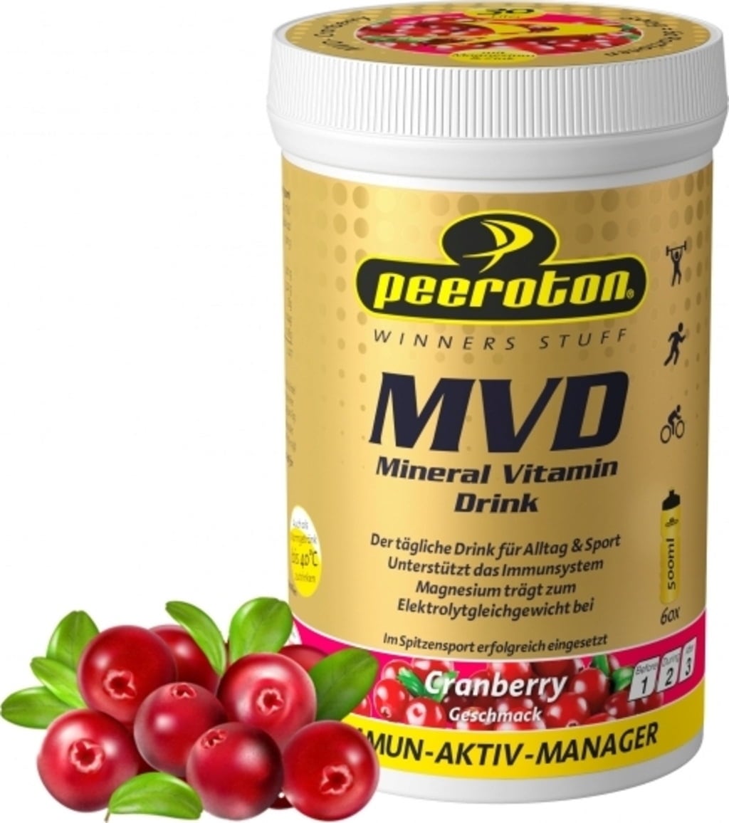 Ta mineralno-vitaminski napitek, Mineral Vitamin Drink (MVD), znamke Peeroton zagotavlja telesu bistvene minerale in vitamine. Krom, ki ga vsebuje, izboljša razgradnjo ogljikovih hidratov in beljakovin. Idealen za tešenje žeje med treningom, pa tudi pred in po njem.