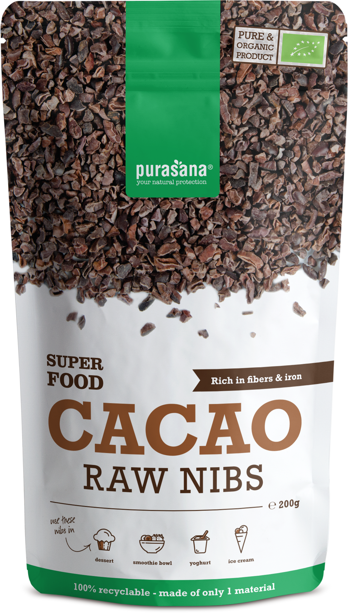 Koščki kakava (nibs) iz skupine Purasan so majhni koščki, čisto surovega kakava, brez sladkorja in ojačevalcev arome. Kakav naravno vsebuje veliko posebnih hranilnih snovi, fitokemikalij in je bil dolgo časa zaradi maščob in sladkorja podcenjevano.