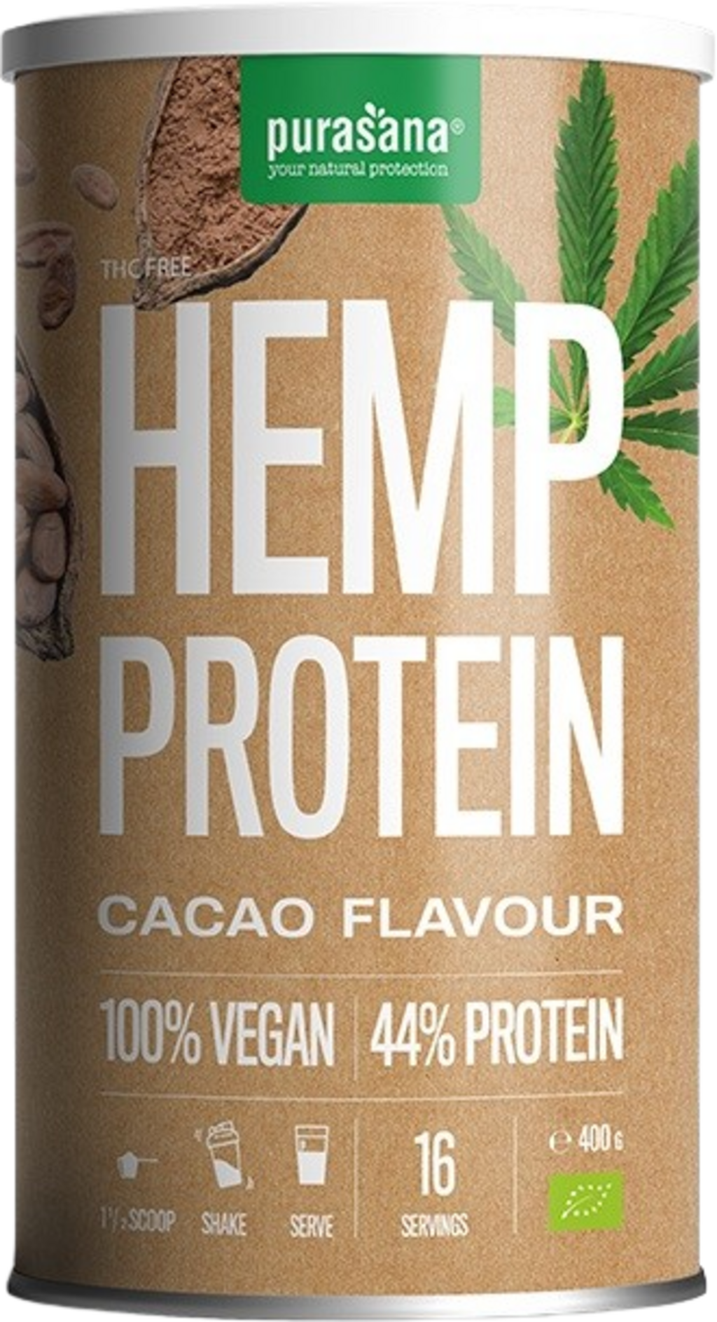 Purasana Veganski proteinski napitek - proteini konoplje, Kakav (400 g)