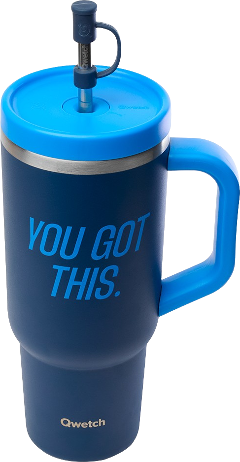 Qwetch Travel Cup termo skodelica iz nerjavečega jekla "Level up"- 900 ml, Midnight blue