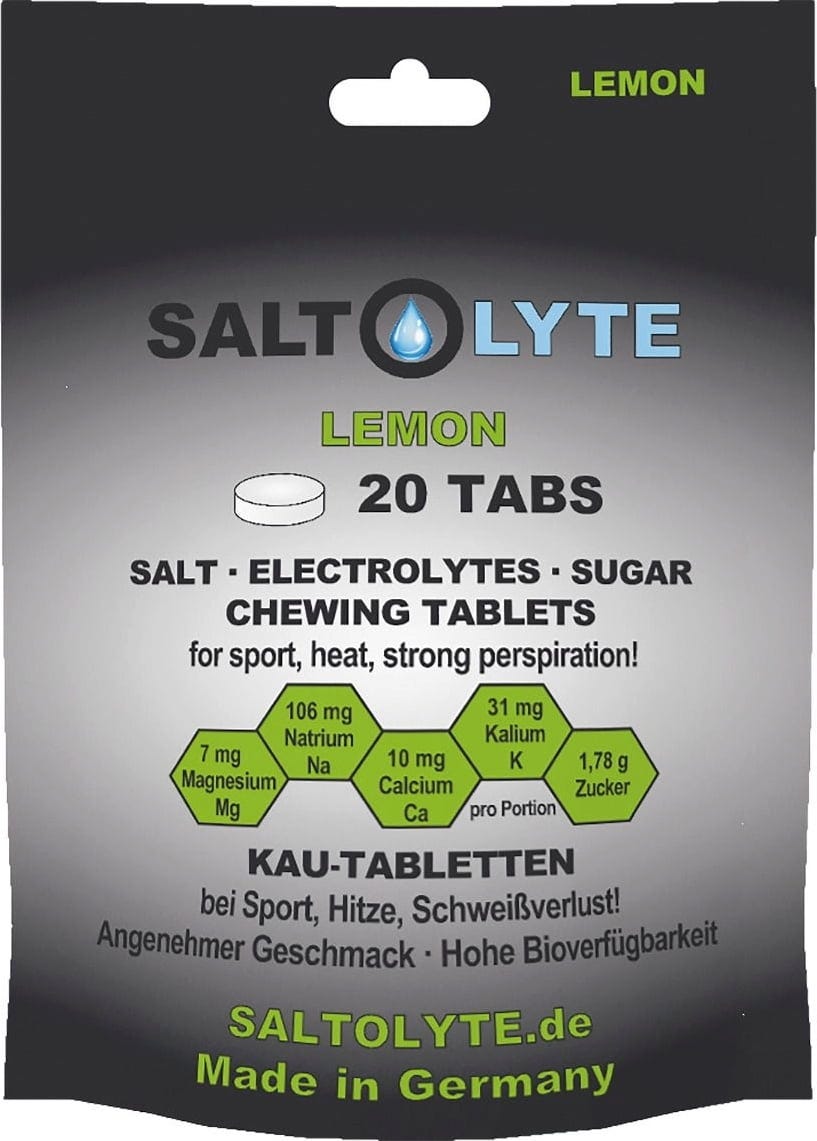 Žvečljive tablete s soljo in elektroliti znamke SALTOLYTE so priročen način za uživanje pomembnih mineralov in soli med telesno aktivnostjo. Tablete so vegetarijanske, brez glutena, laktoze, umetnih barvil in GSO. Zaradi svoje kompaktne oblike so idealne za uporabo na poti – bodisi med treningom, tekmovanjem ali pri visokih temperaturah.