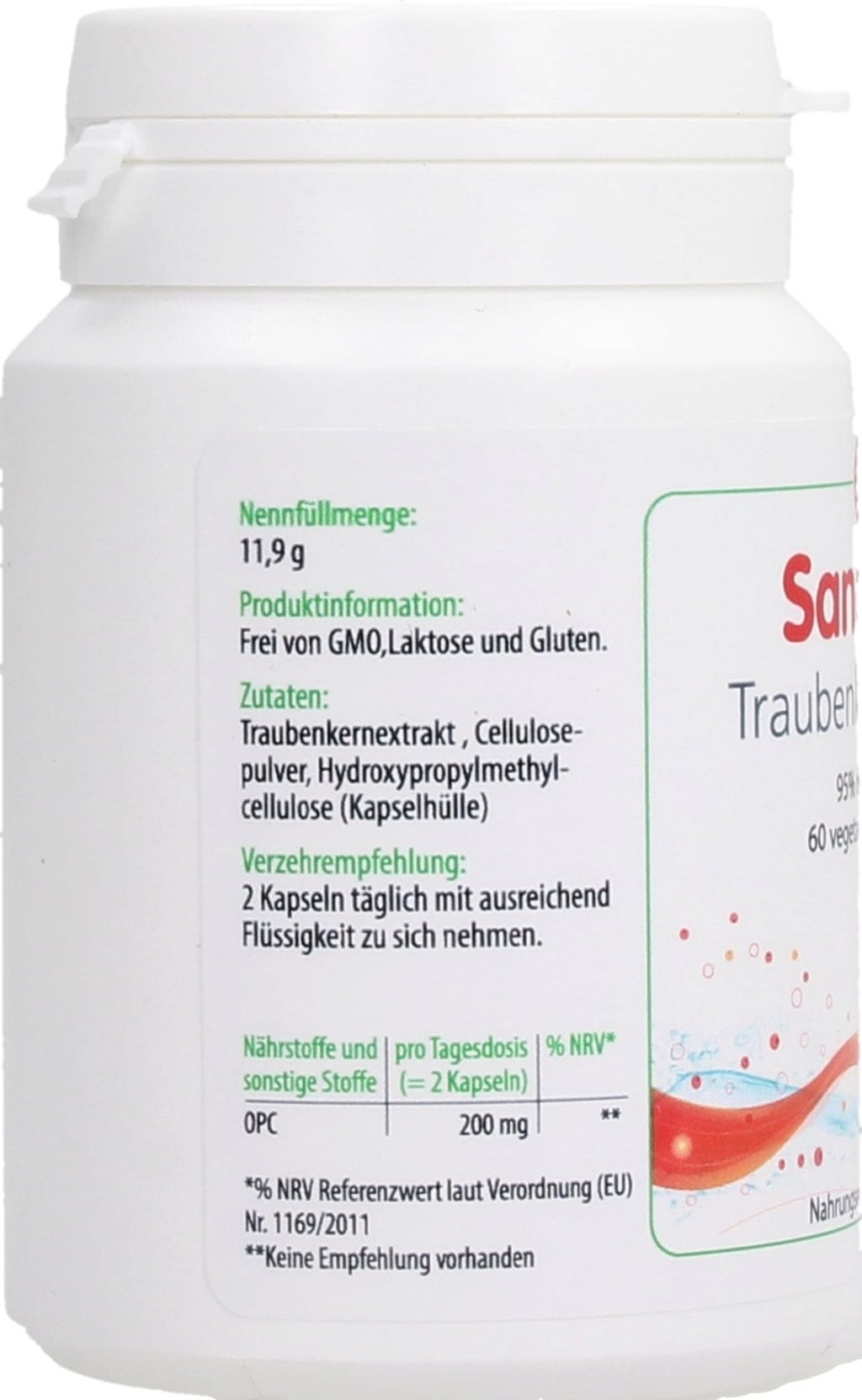 Sana OPC je iz 95% ekstrakta grozdnih pečk s 100 mg vsebine na kapsulo.