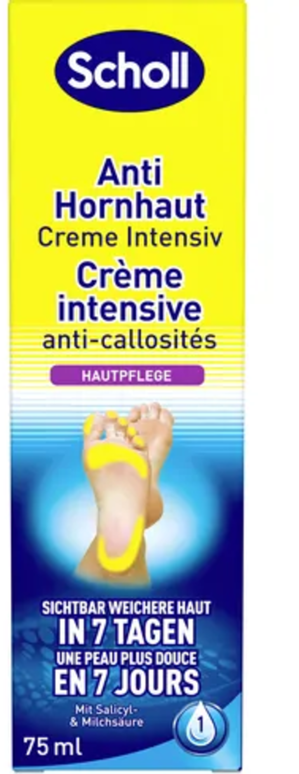 Intenzivna krema proti trdi koži znamke Scholl je idealna za redno uporabo. Koža jo hitro vpije, zagotavlja intenzivno vlaženje in ne pušča mastnega sloja. Krema je obogatena s karitejevim maslom, oljem breskovih koščic in alantoinom.
