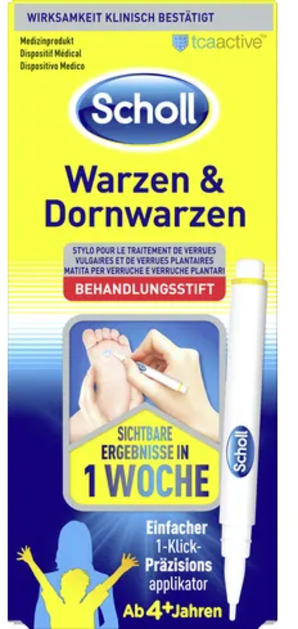 Pero za zdravljenje bradavic in plantarnih bradavic znamke Scholl se lahko uporablja na stopalih in rokah ter pri otrocih, starih 4 leta in več. Zahvaljujoč barvnemu gelu in natančni konici je precizna uporaba enostavna.