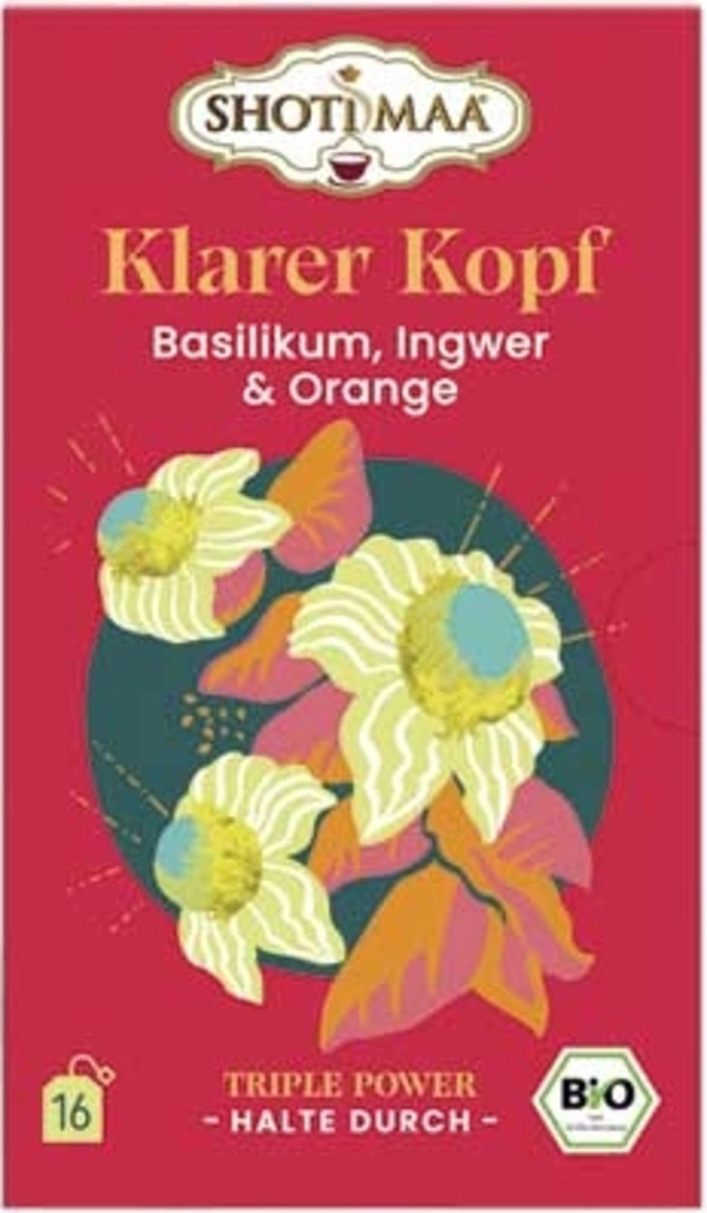 Shoti Maa Bio čaj "Bistra glava" - bazilika, ingver in pomaranča, 16 čajnih vrečk (32 g)