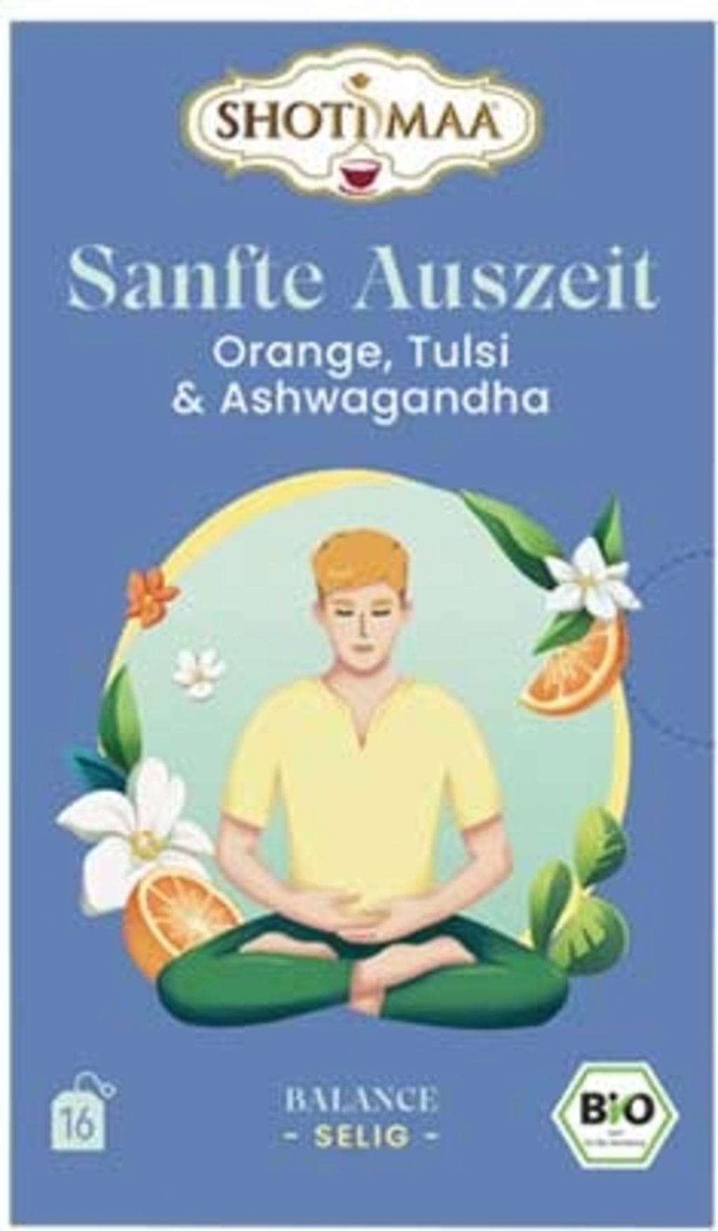 Shoti Maa Bio čaj "Nežen oddih" - pomaranča, sveta bazilika in ašvaganda, 16 čajnih vrečk (32 g)