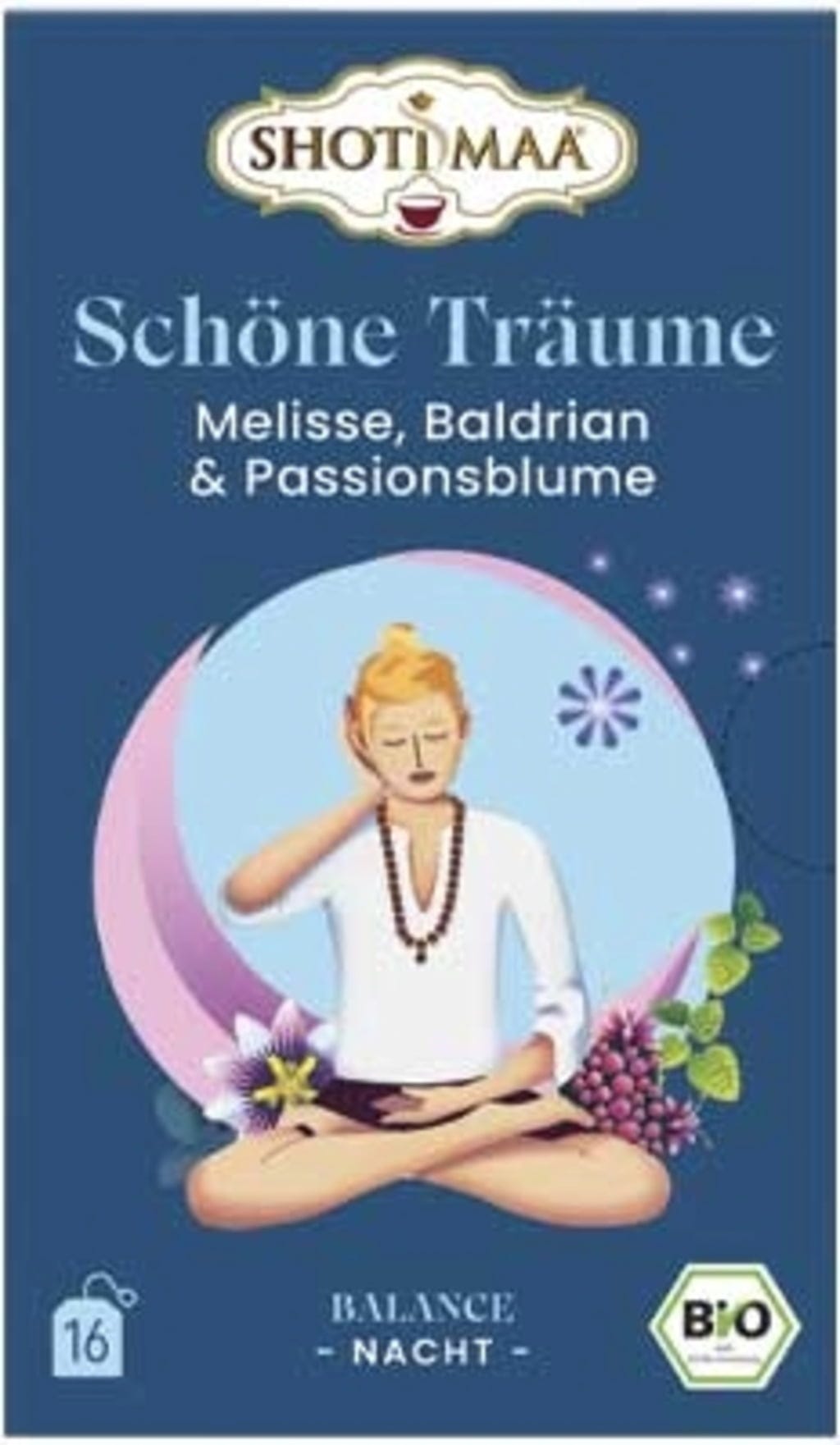 Shoti Maa Bio čaj "Sladke sanje" - melisa, baldrijan in pasijonka, 16 čajnih vrečk (32 g)