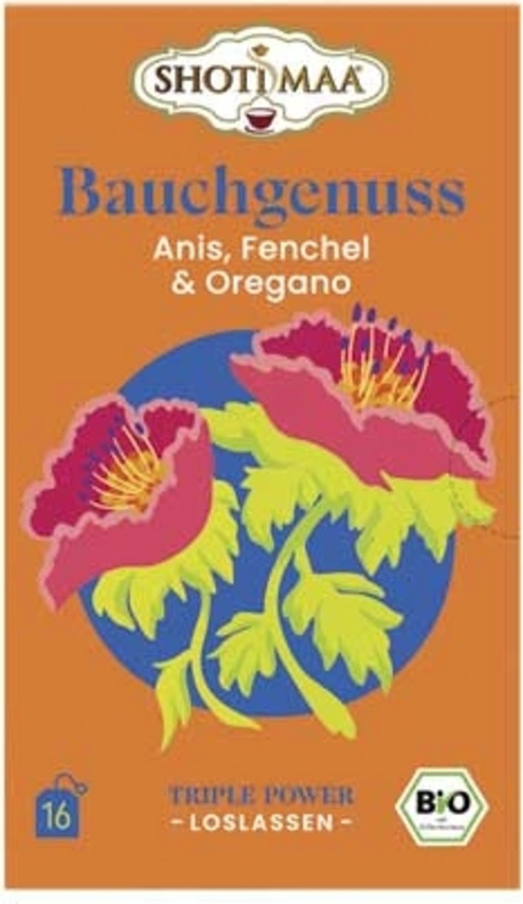 Shoti Maa Bio čaj "Užitek za trebuh" - janež, komarček in origano, 16 čajnih vrečk (32 g)