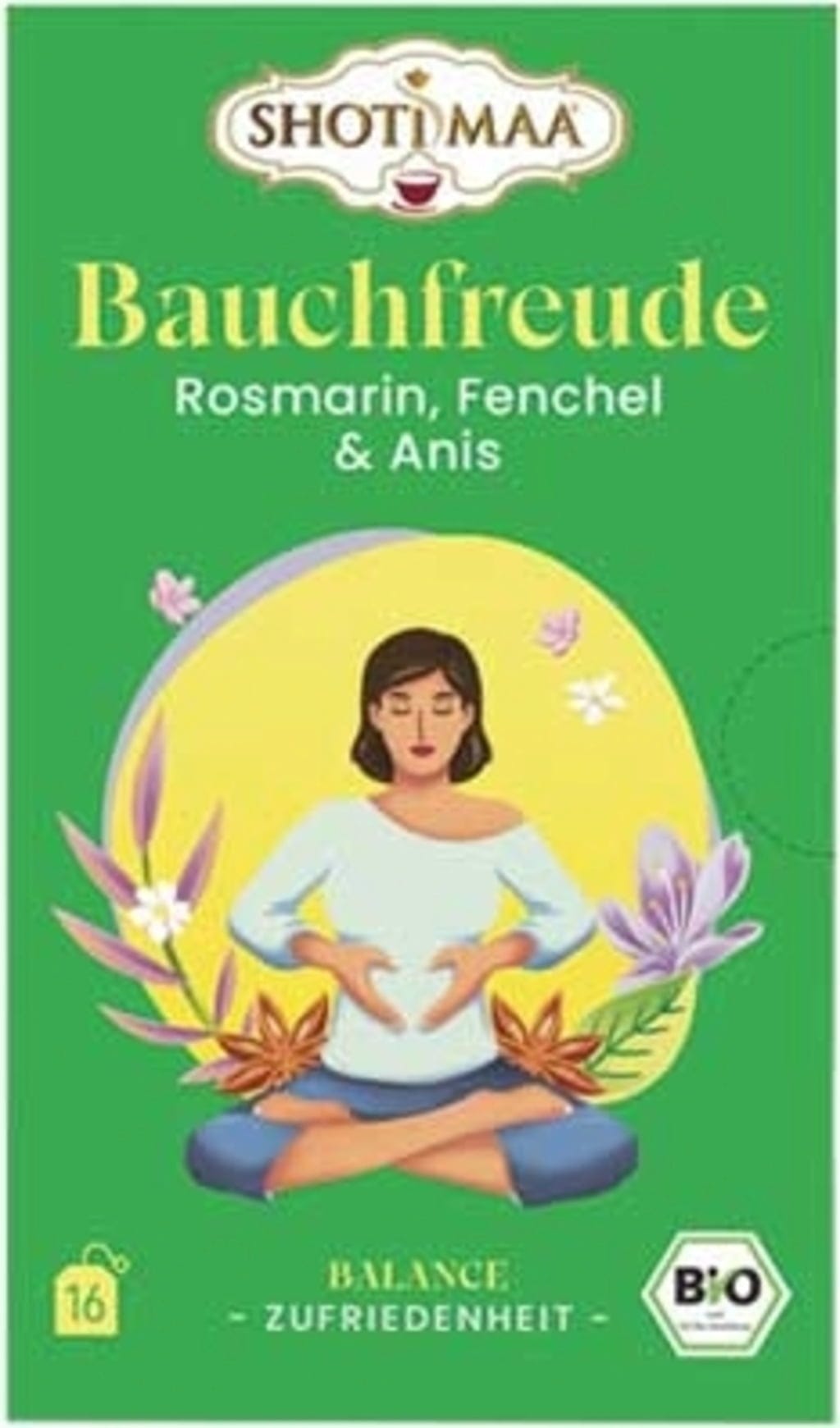 Shoti Maa Bio čaj "Zadovoljen trebuh" - rožmarin, komarček in janež, 16 čajnih vrečk (32 g)