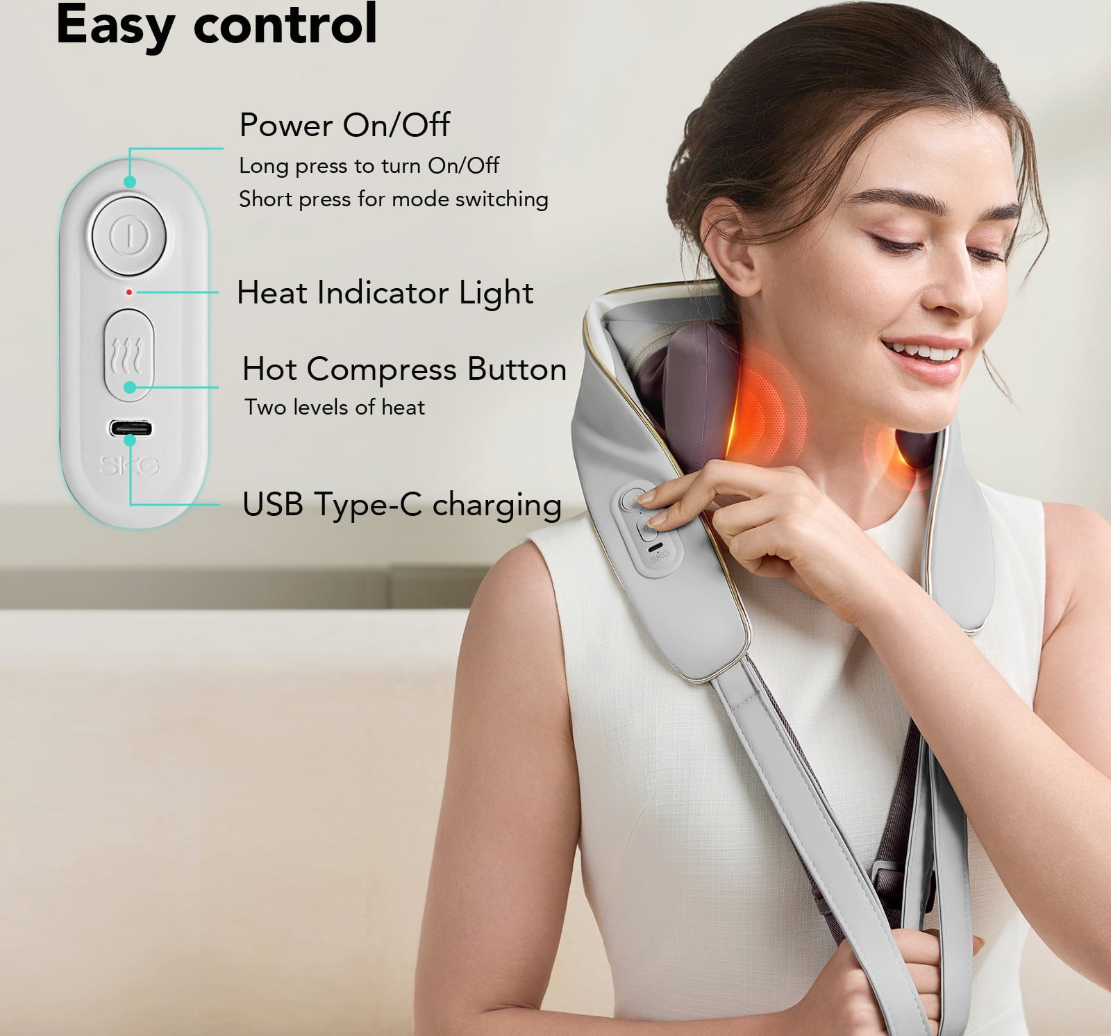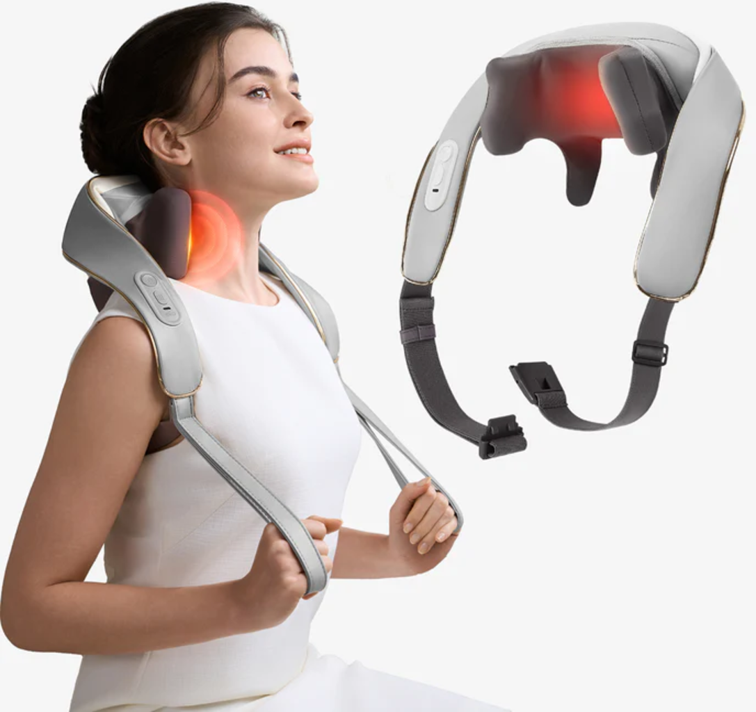 - Shiatsu masaža z gnetenjem: Posebej sprošča mišično napetost v vratu in območje ramen.