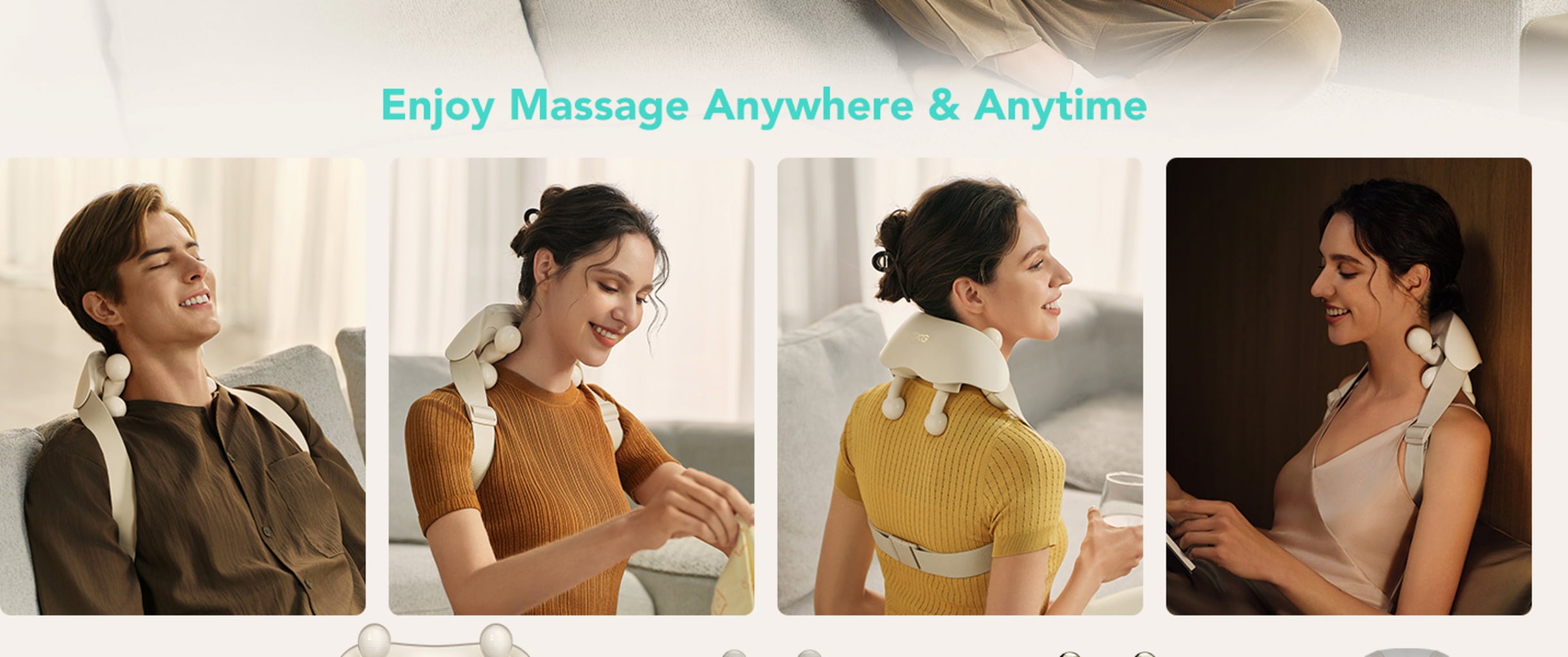 - Uporaba brez uporabe rok: praktični hrbtni trak omogoča masažo med delom, gospodinjskimi opravili ali gledanjem televizije