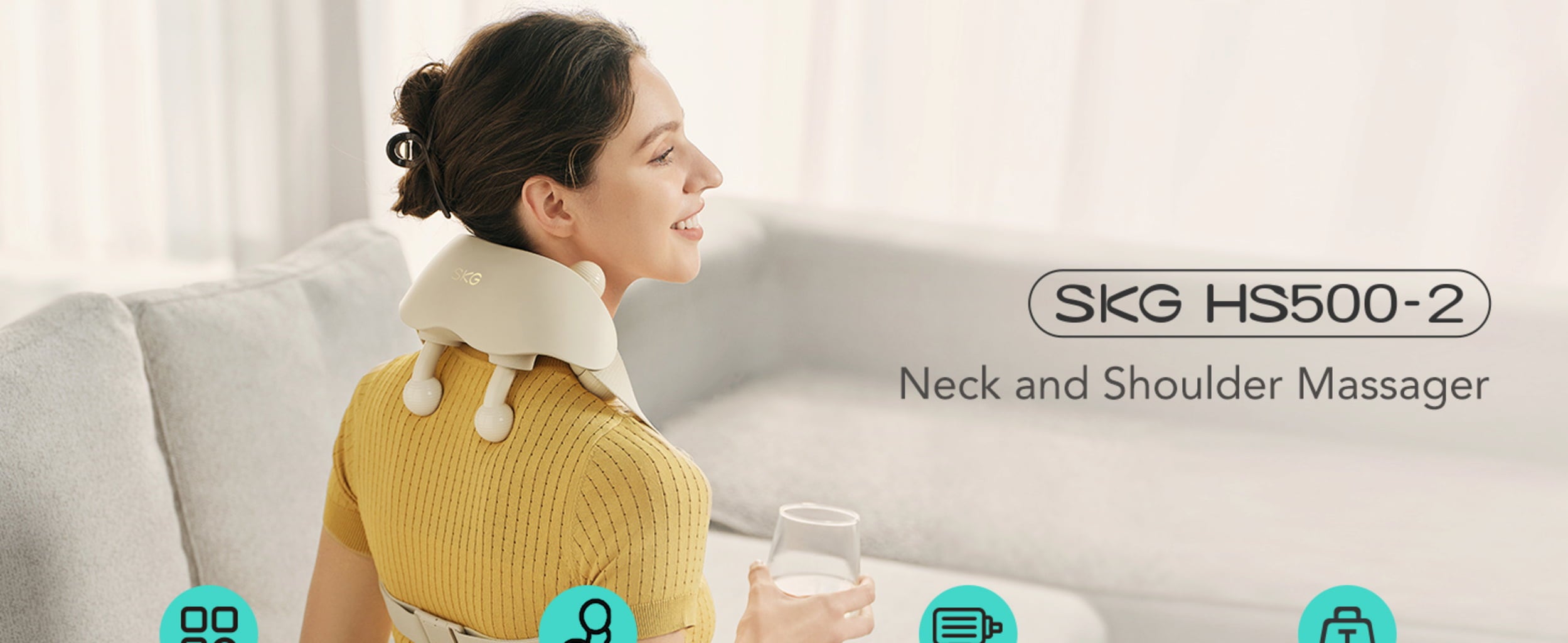 Zahvaljujoč praktičnemu traku za hrbet lahko napravo uporabljate brez uporabe rok, kar vam omogoča maksimalno svobodo med vsakodnevnim sprostitvenim odmorom doma ali za pisalno mizo. Naprava HS500-2 tehta le 880 gramov, baterija pa zdrži 70 minut, zato je lahek in brezžični spremljevalec, ki ga lahko prilagodljivo vključite v svoje upravljanje časa in z usmerjenim mehanskim delovanjem podpira regeneracijo vaših mišic.